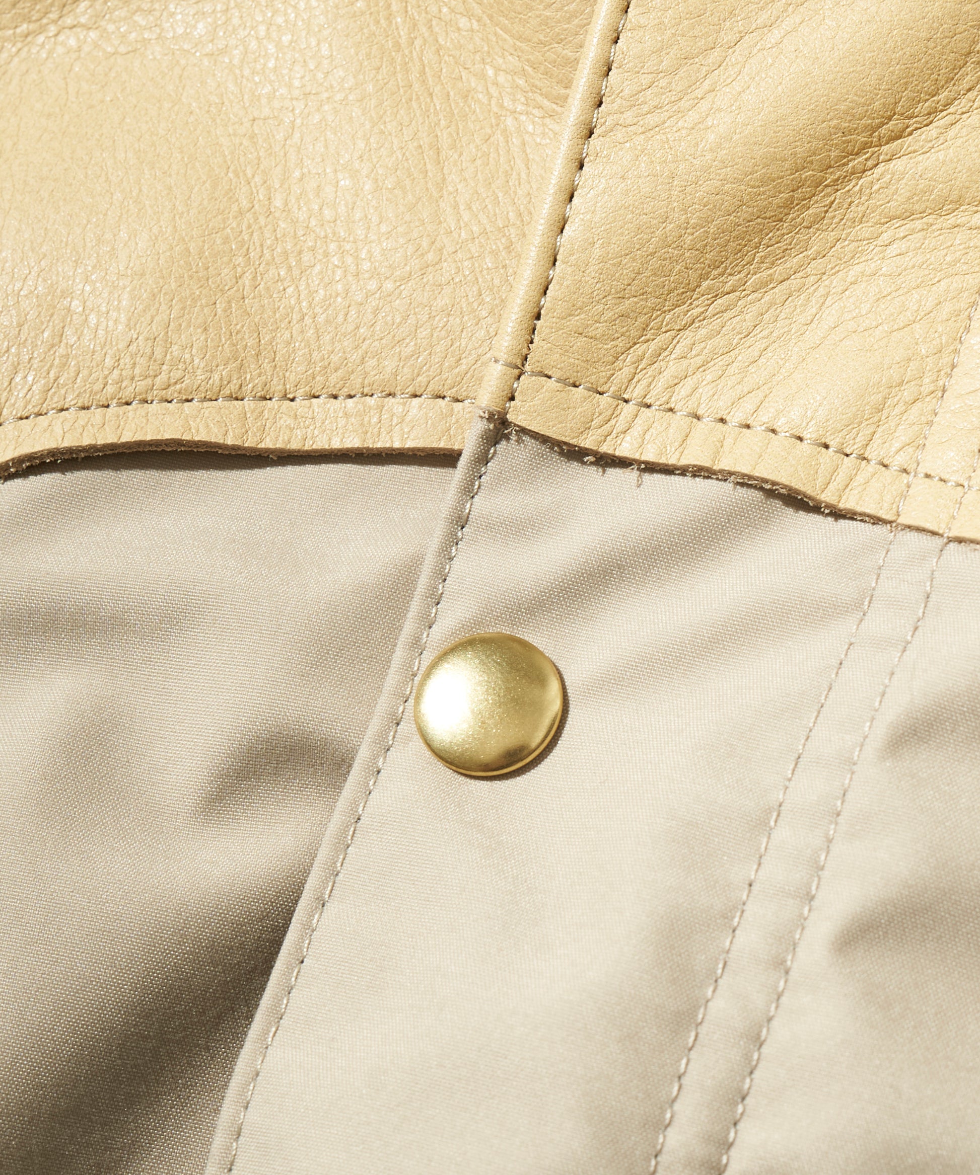 カジュアルで軽い印象なマウンテンパーカーも革ヨークのおかげで一気に高級感が生まれます。