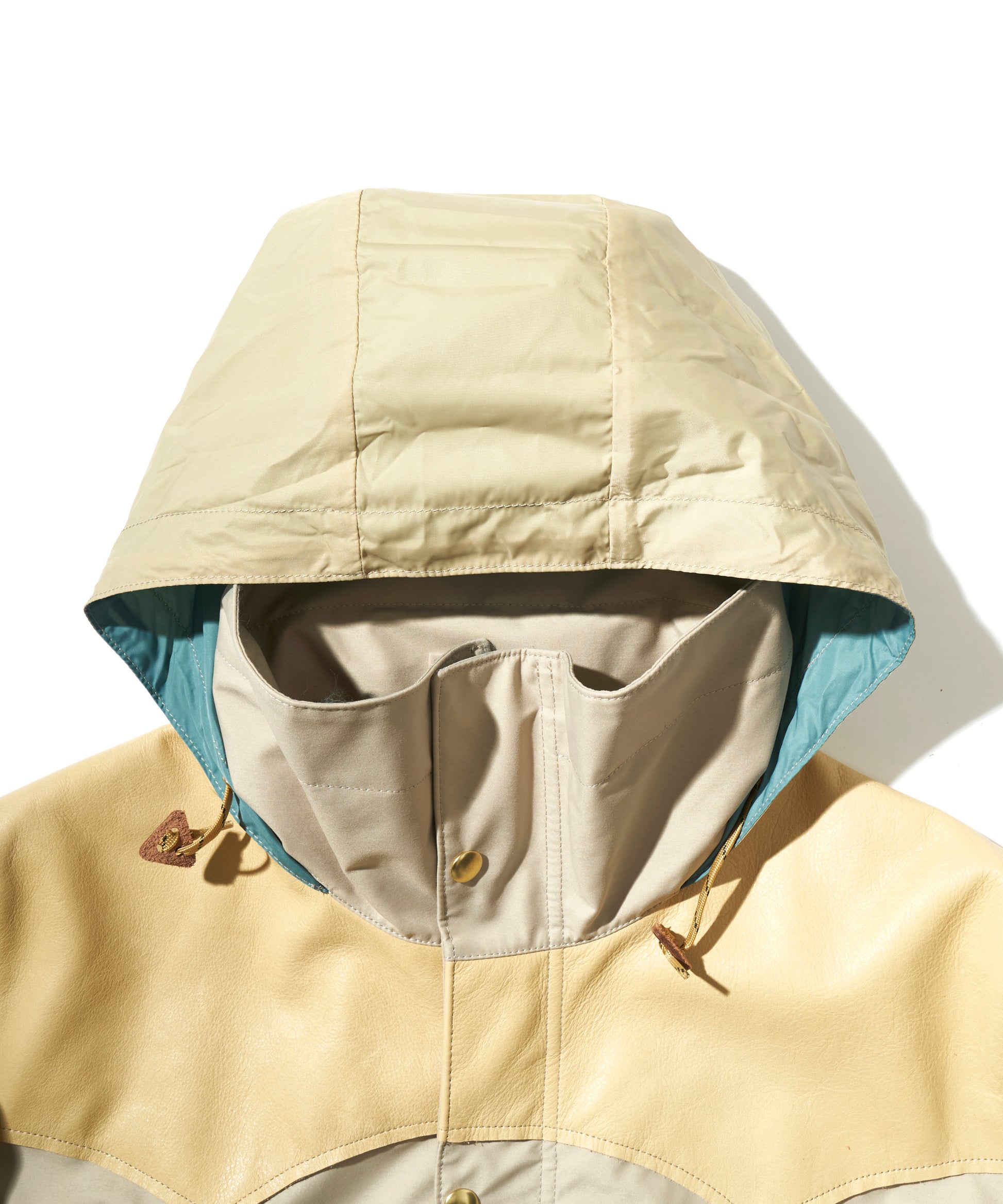 1974年当時最高のハイテク素材であった防水素材をいち早く採用、一枚革ヨーク仕様のマウンテンパーカを完成させた” Rocky Mountain Fetherbed “よりANATOMICA別注モデルが登場。
