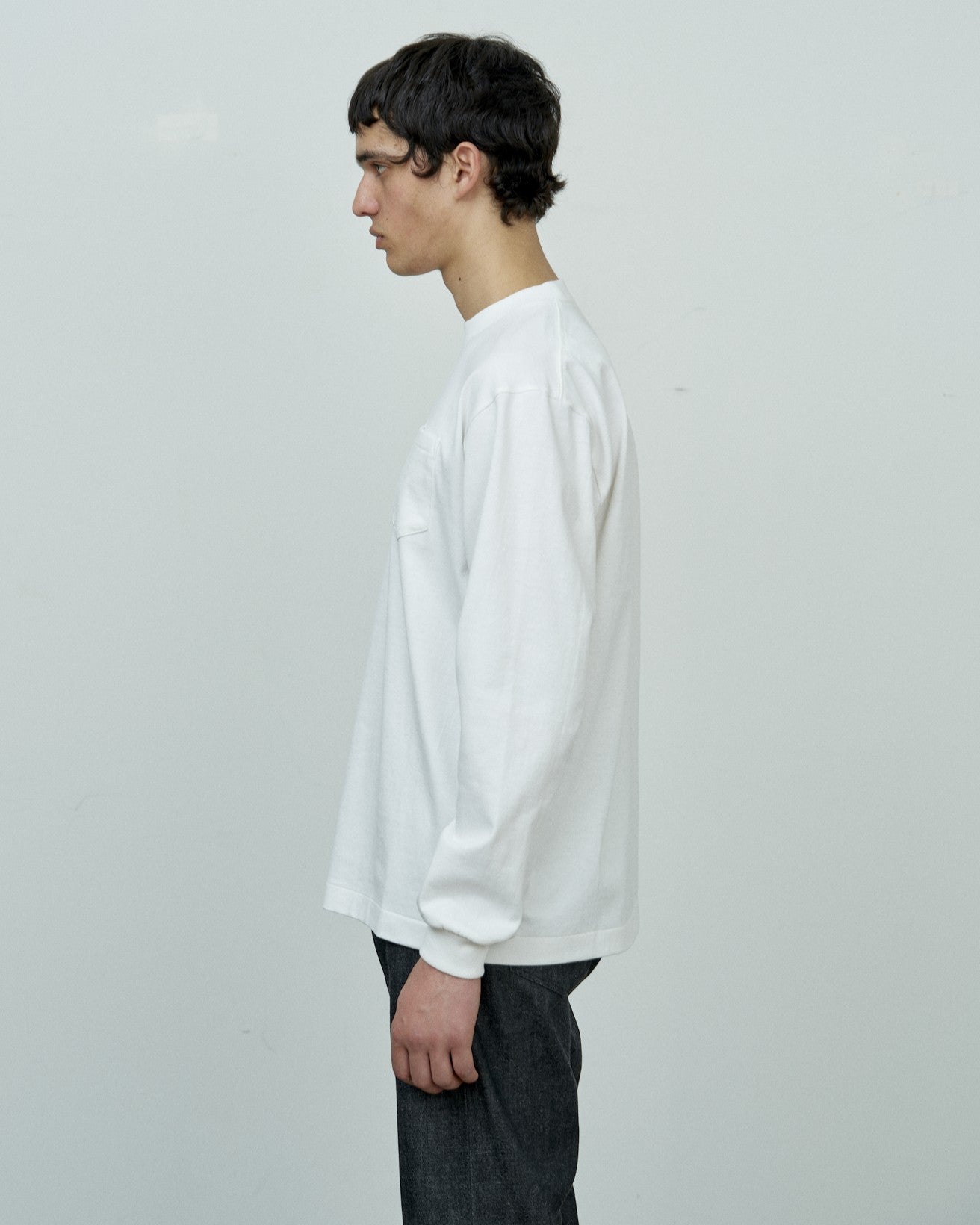 The fabric is an original heavy-ounce jersey made with single-ply yarn count 12. It has just the right thickness and stiffness, yet feels good against the skin and improves in texture with each wash.