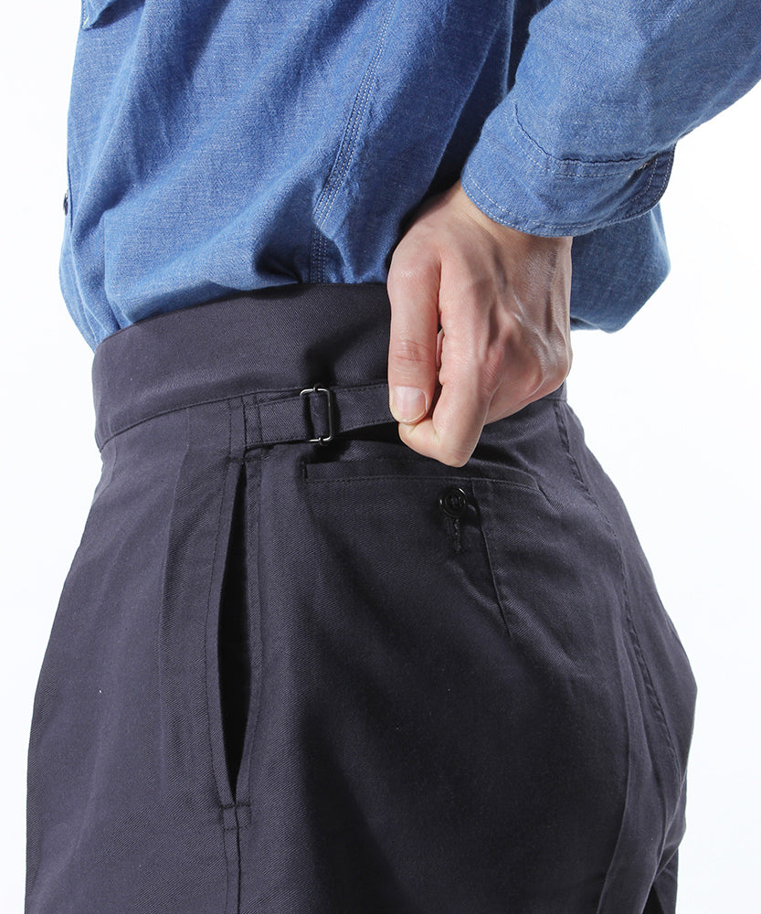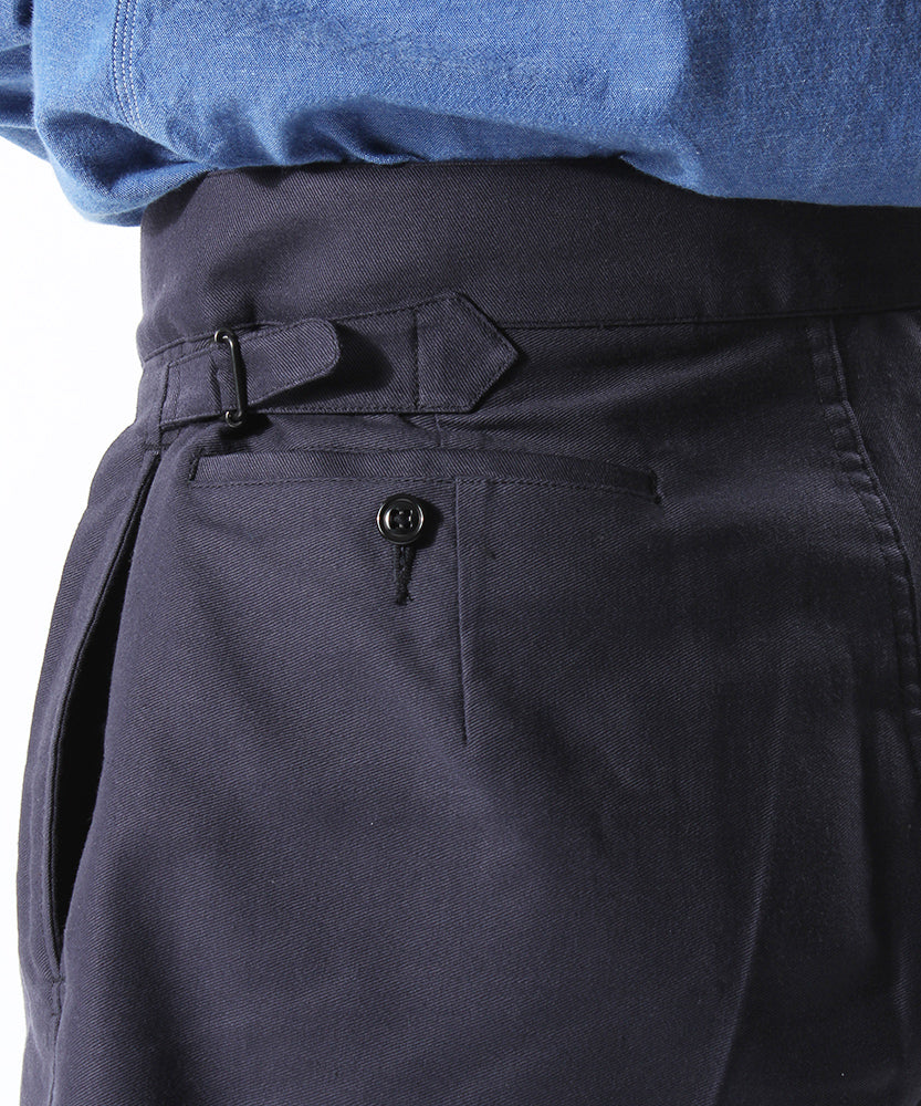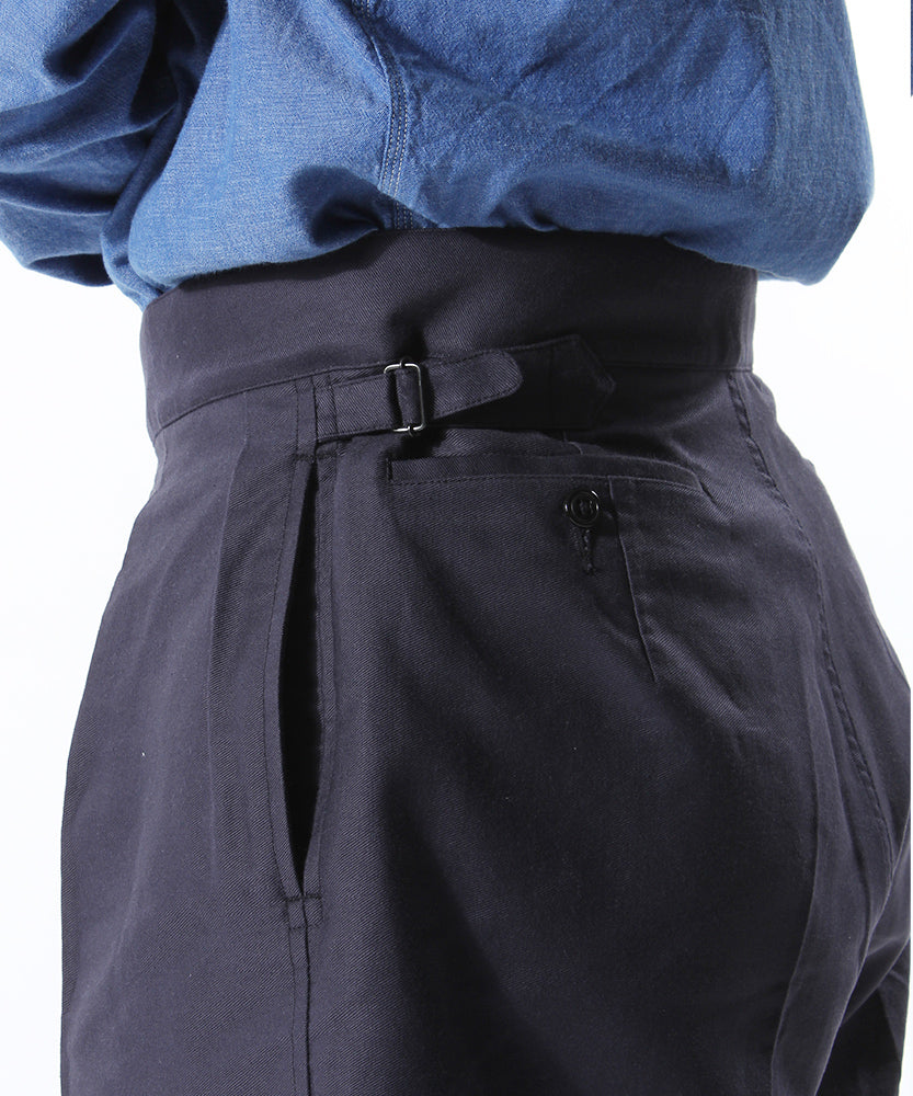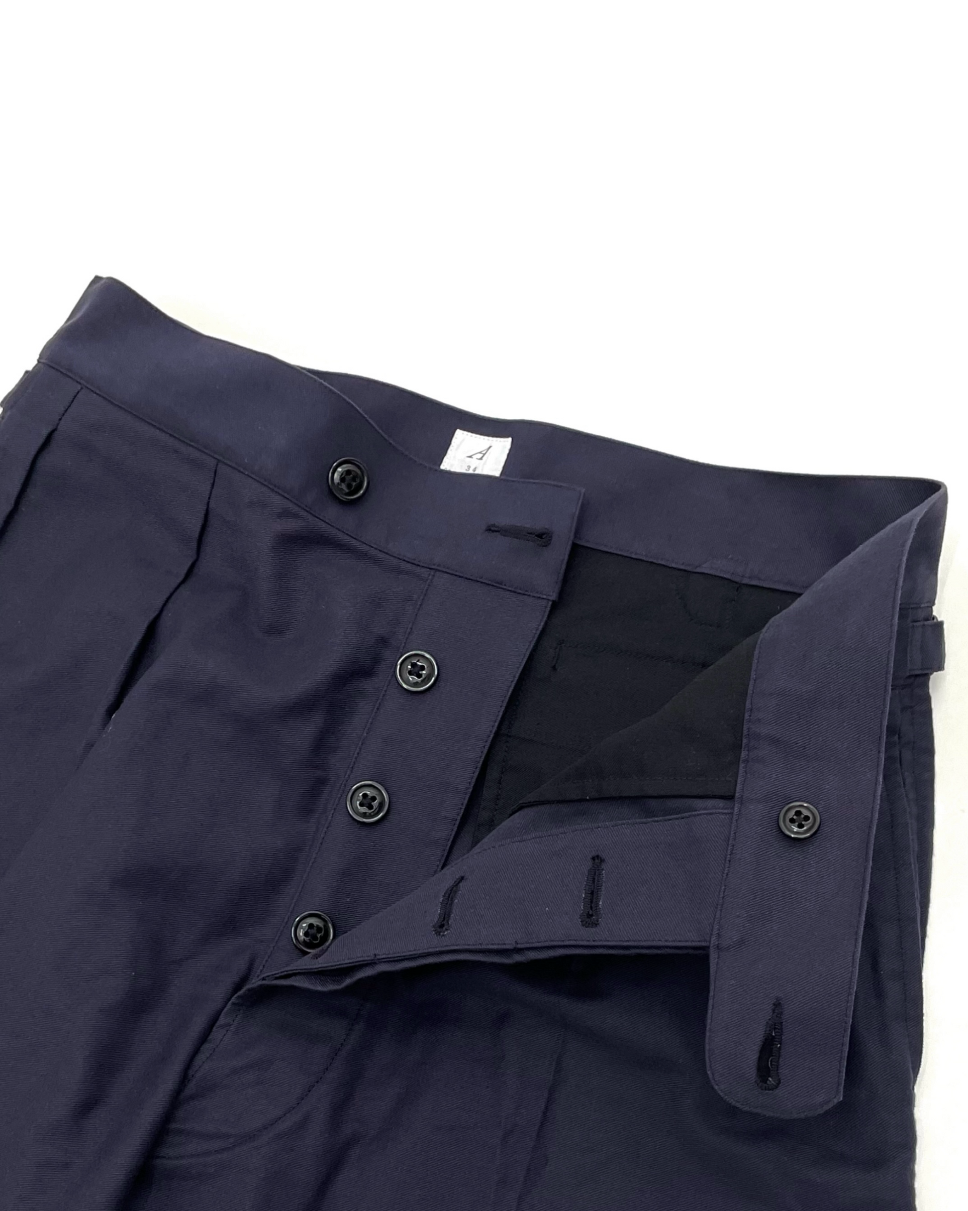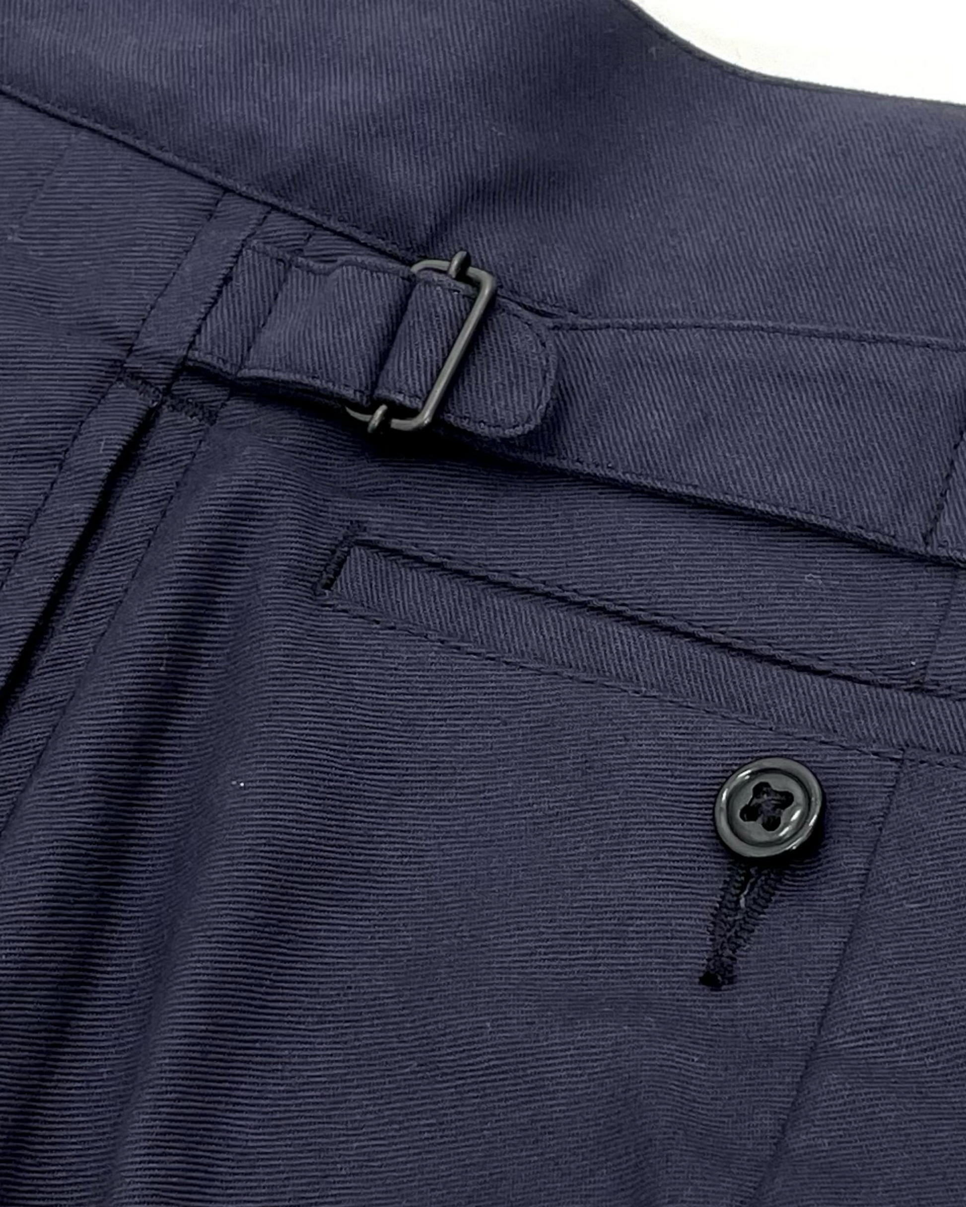 The navy color reproduces the fabric of pants from the 1940s.