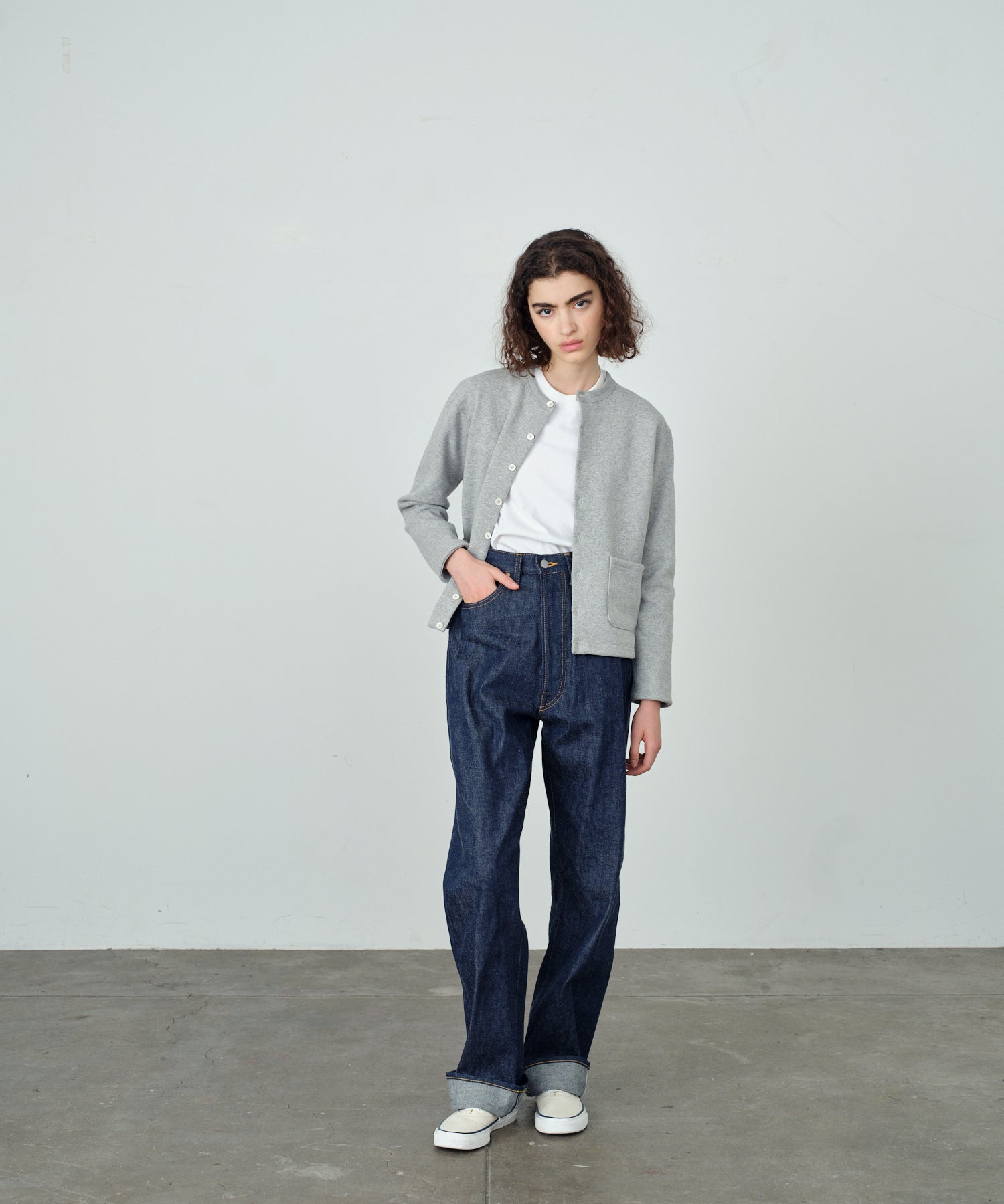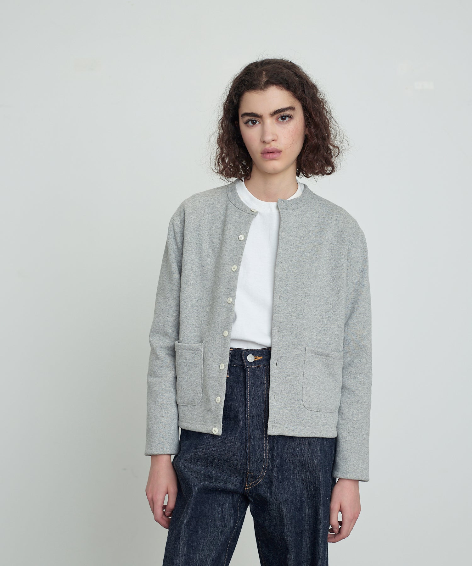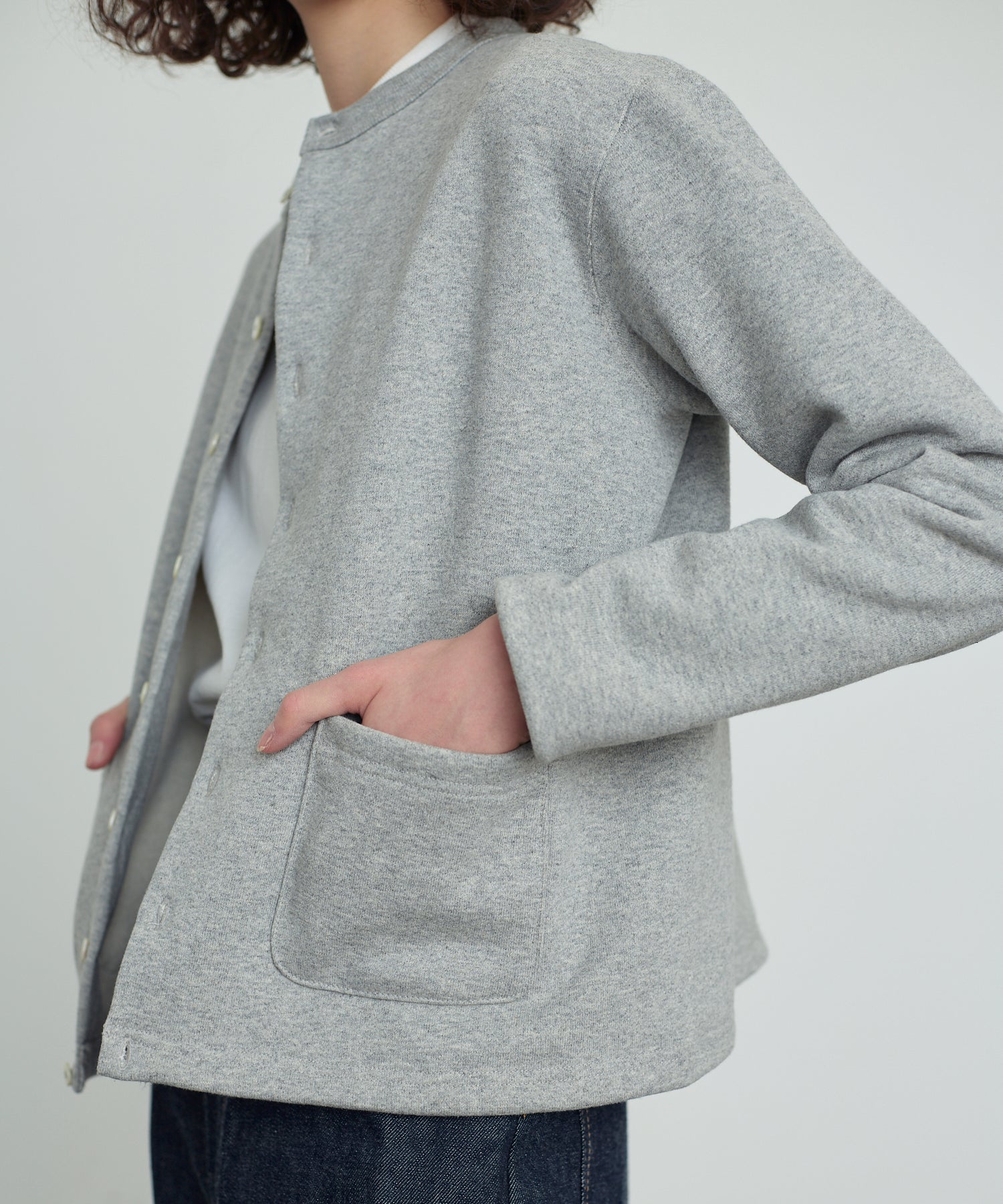 A crew neck sweat cardigan that can be easily worn like a cut-and-sew top.