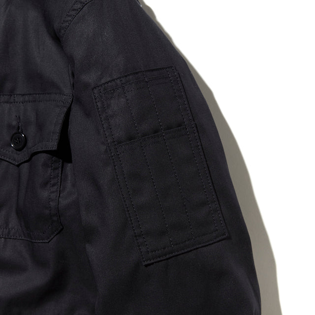 It is made of an original cotton poplin material called ARMY CLOTH, which has a smooth texture and good breathability, and features four functional pockets with a military-style design.