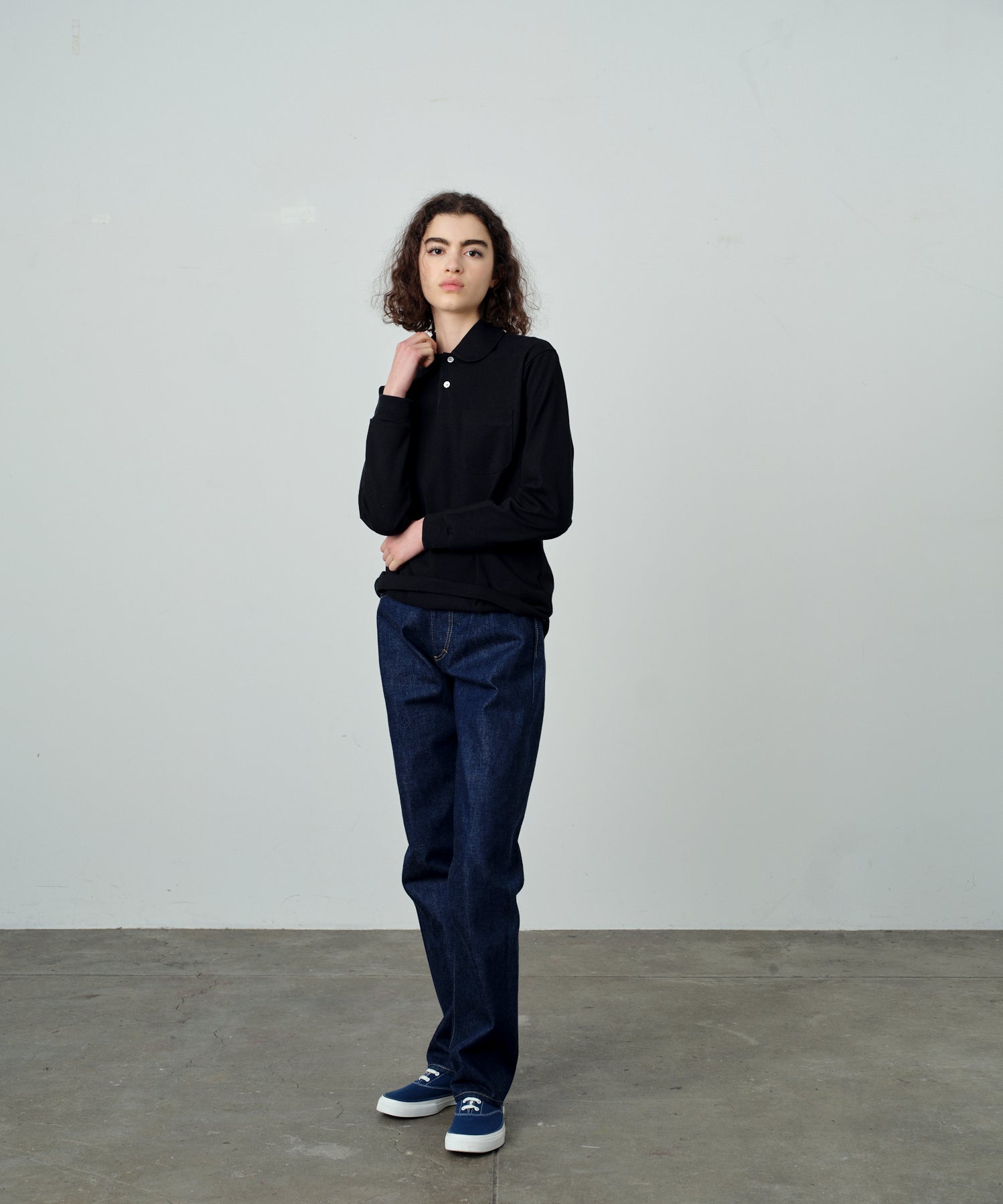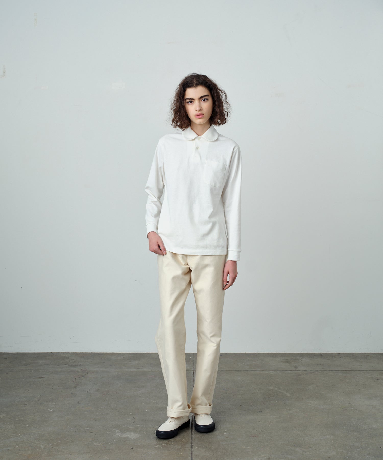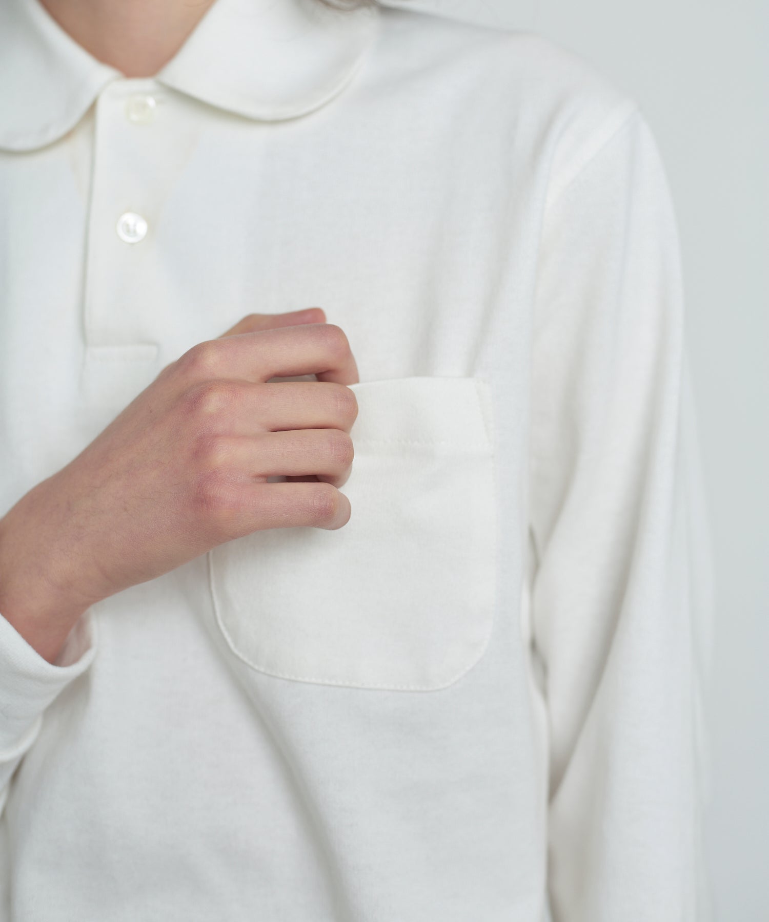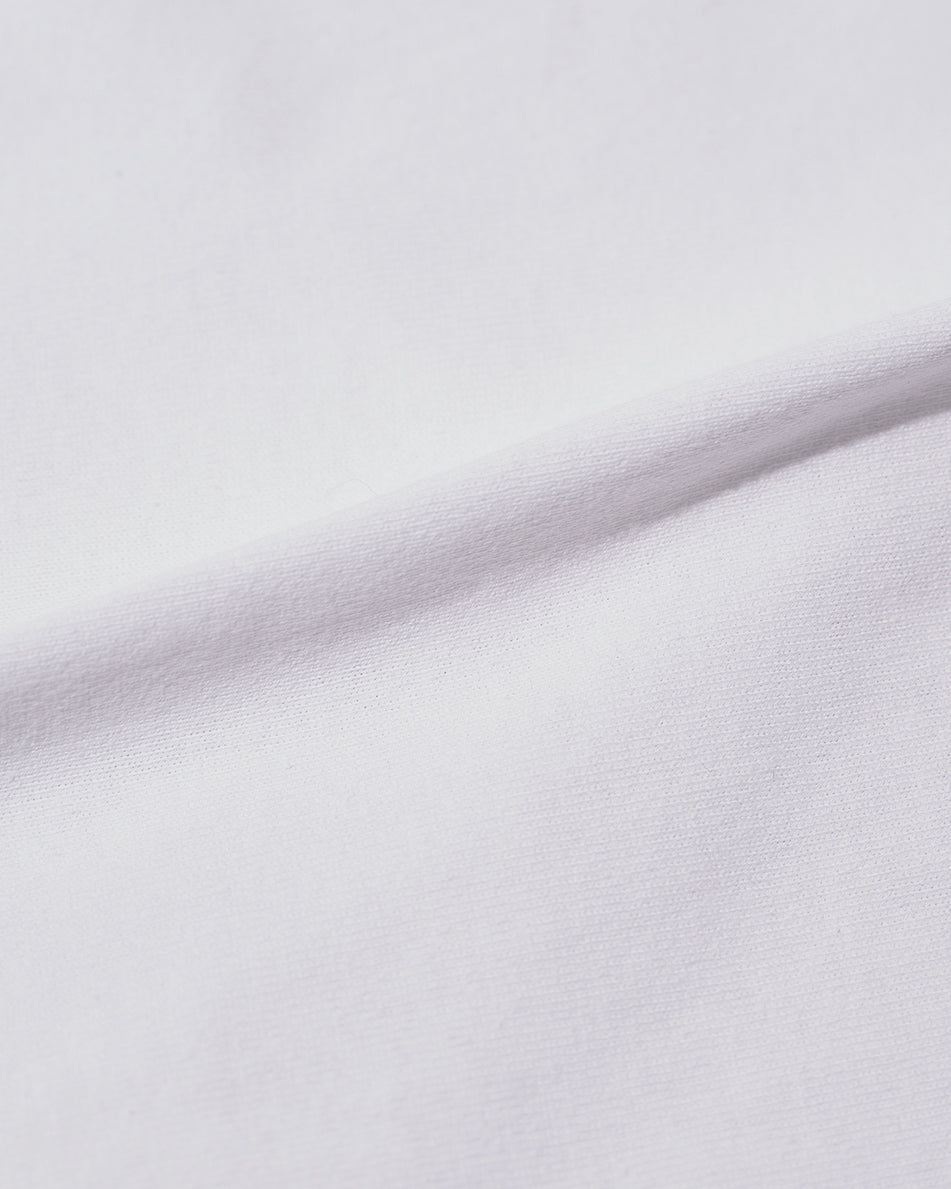 원단에는 쌀면을 원료로 공기의 힘으로 방적된 빈 방사 (오픈 엔드 얀)를 사용한 천축을 채용. 자연스러운 얼룩감과 통통한 드라이한 질감이 특징으로, 입을 정도로 피부에 친숙한 감촉이 매력입니다.
