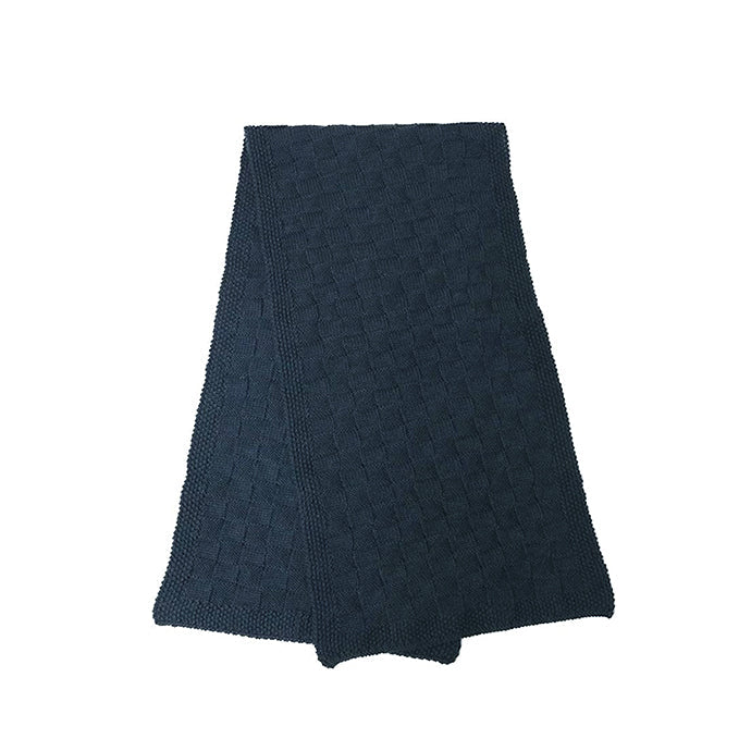 チェッカー柄の凹凸ある編み地が特徴で、シンプルながら存在感のある仕上がりです。
