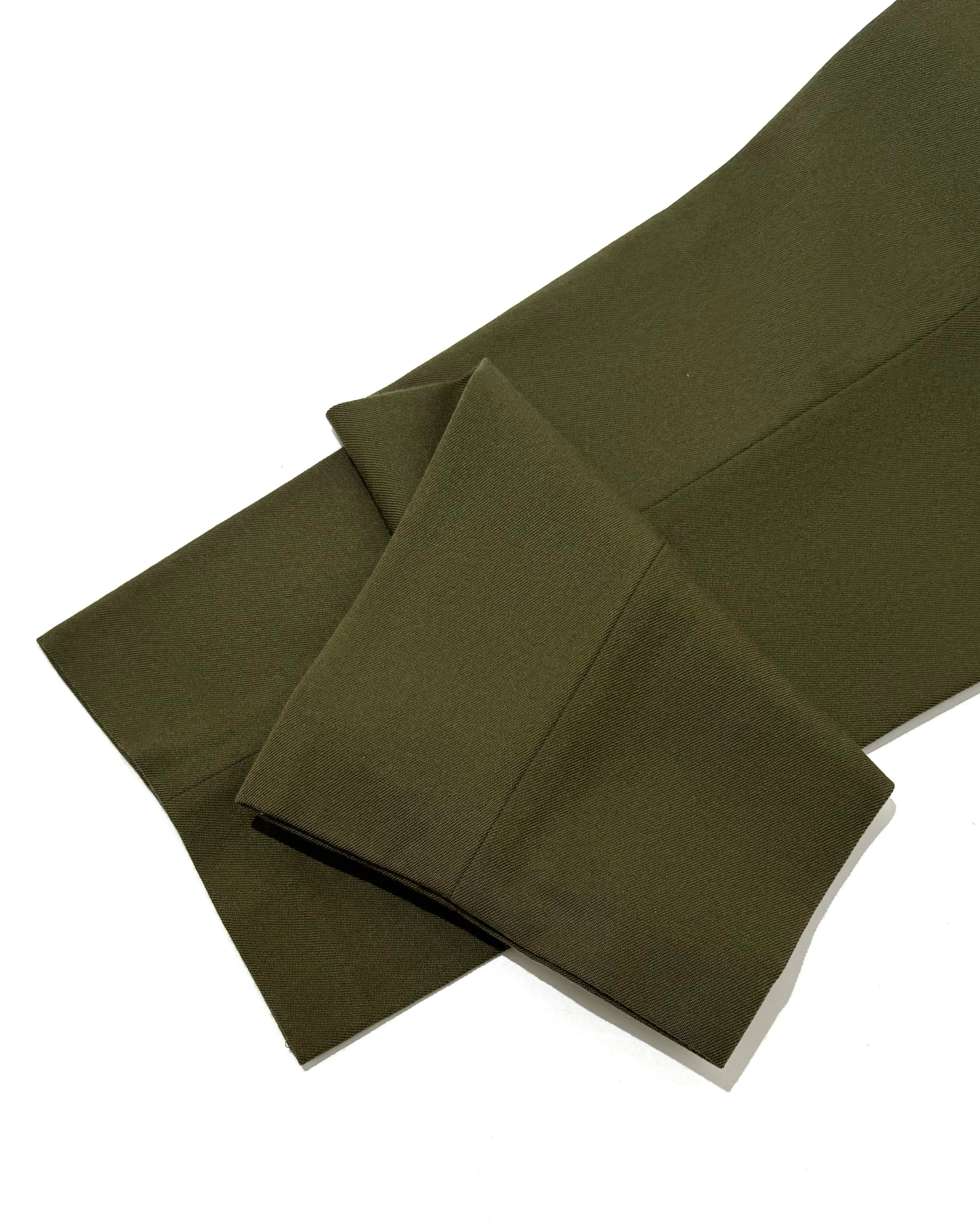 적당한 여유를 갖게 한 실루엣으로, 밑단은 깔끔한 라인.