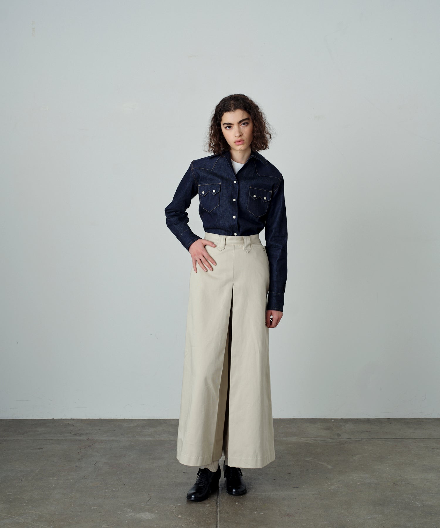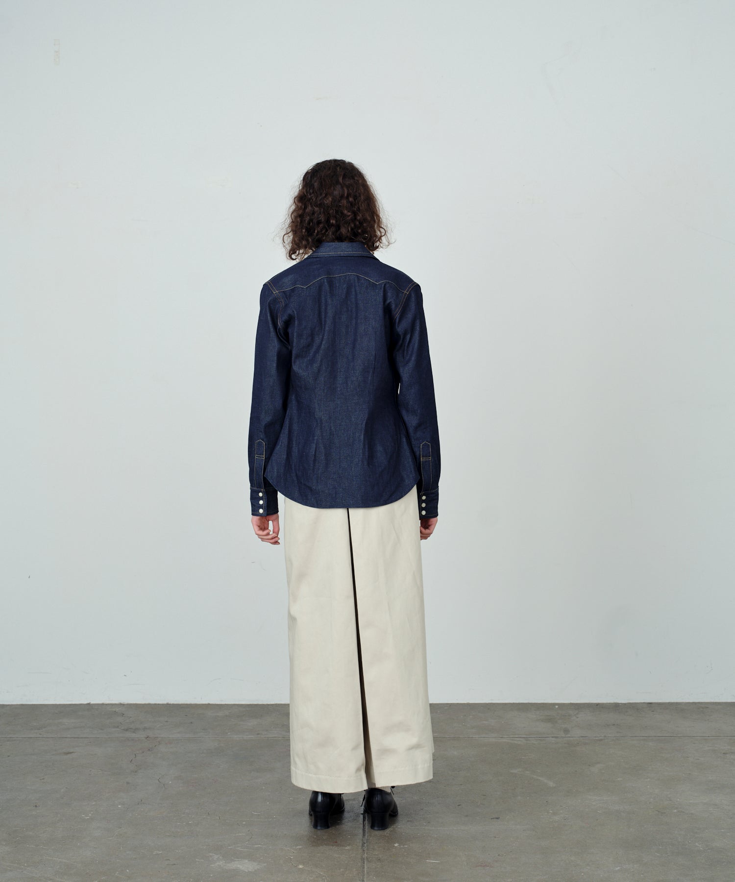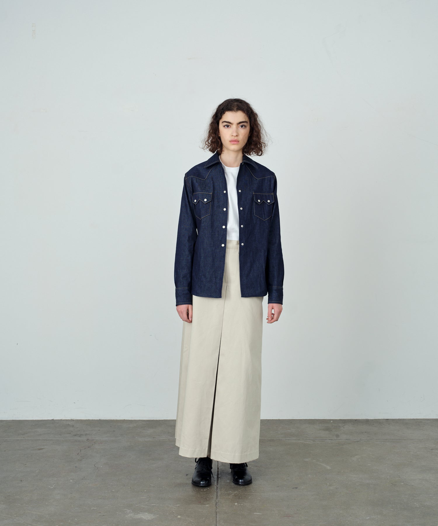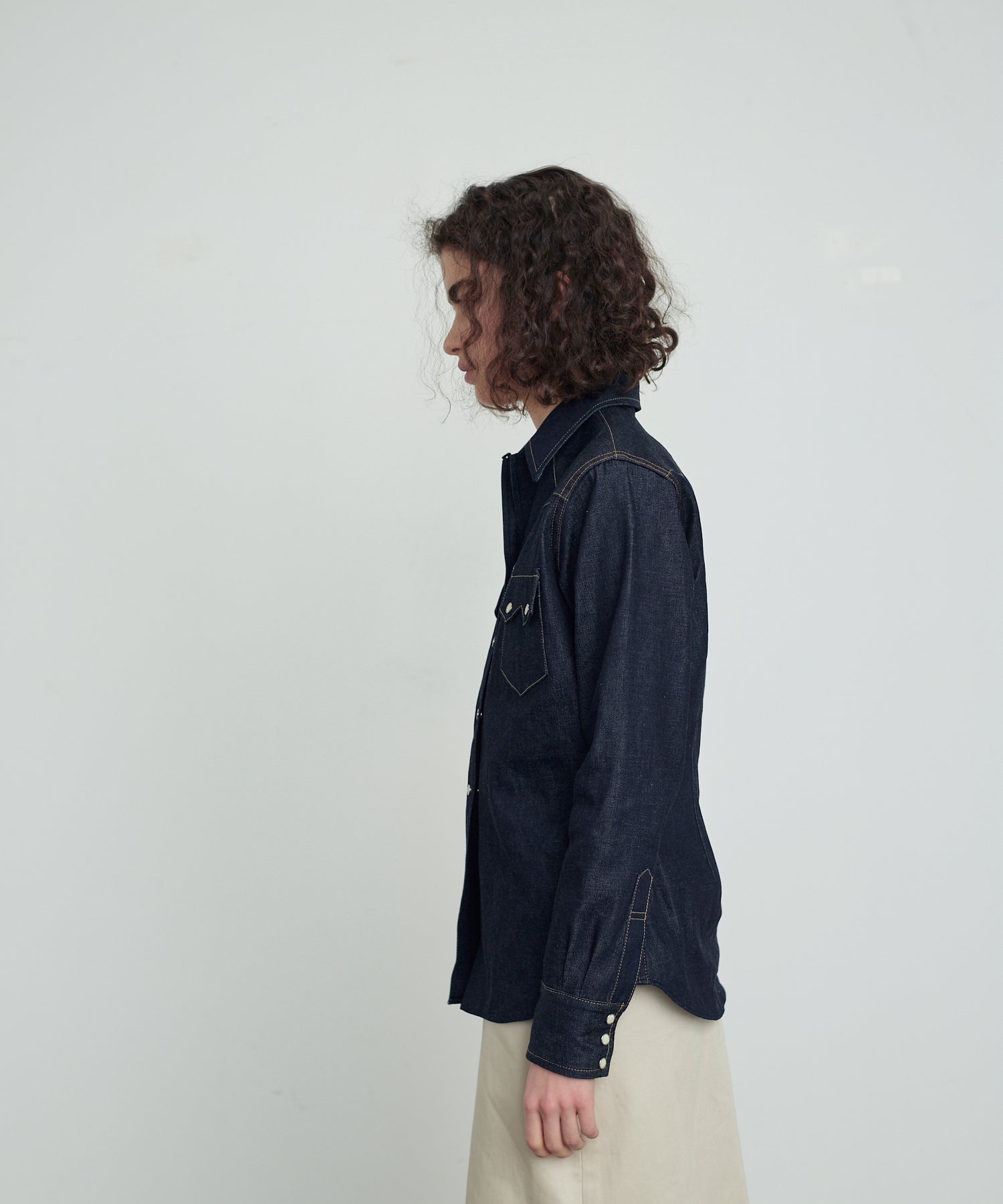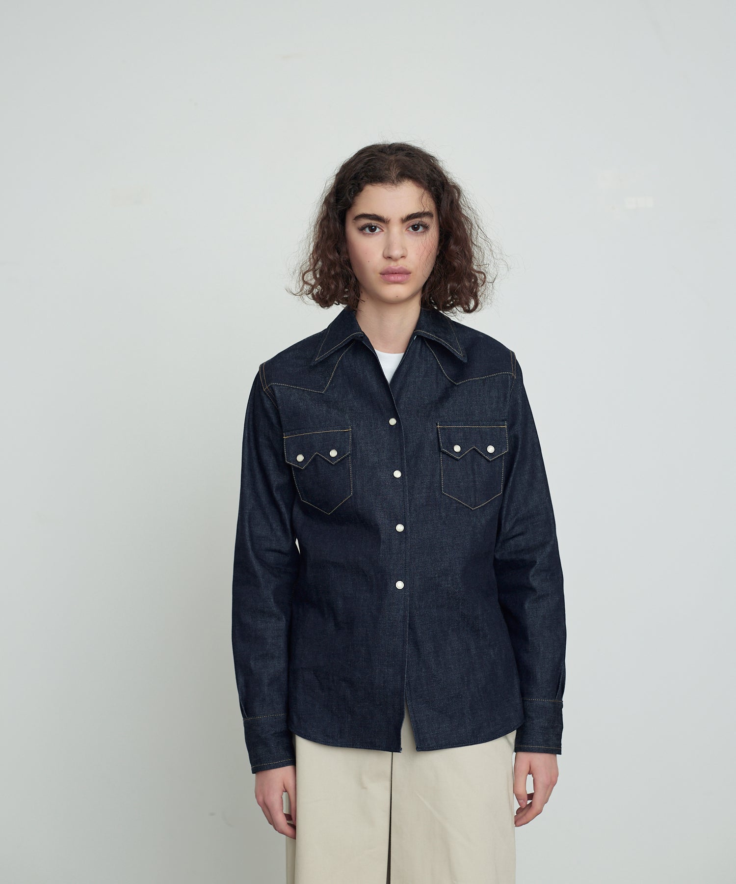 1950년대의 미국에서 태어난, 여성용 웨스턴 셔츠의 스타일을 베이스로 재구축한 일착. 웨스턴 요크나 플랩 포켓, 스냅 버튼이라고 하는 당시의 의장을 계승하면서, 현대적인 밸런스에 떨어뜨리고 있습니다.
