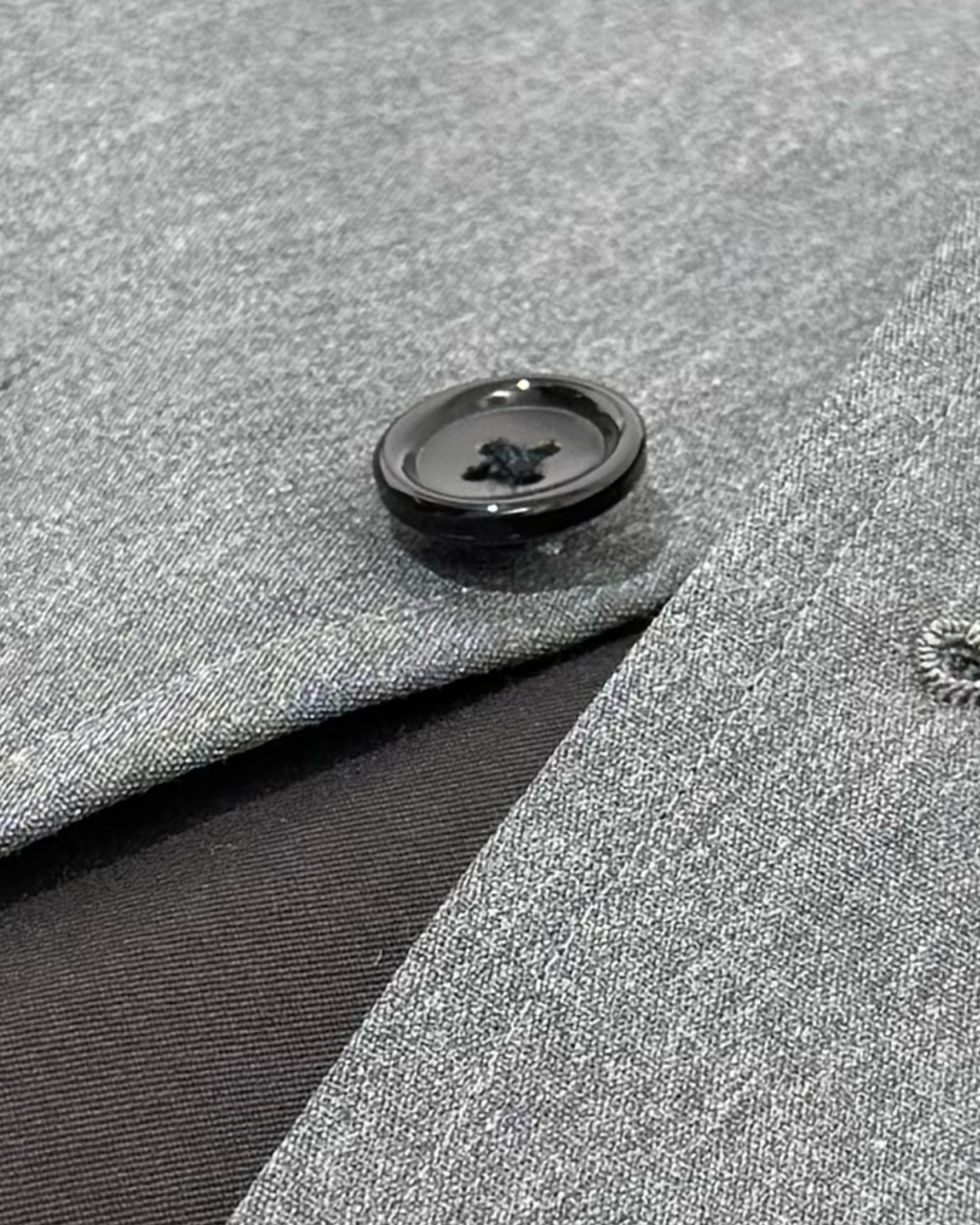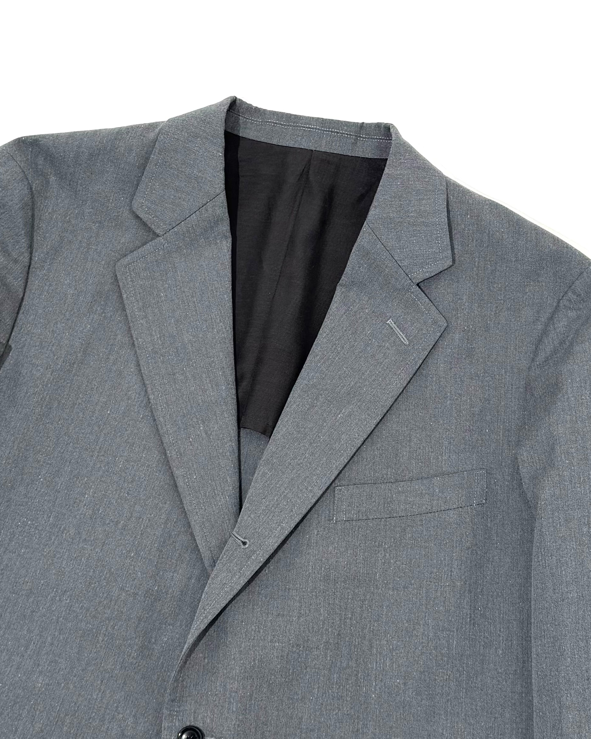 3 버튼, 자연 어깨, 얇은 라펠의 고전적인 다루기 쉬운 모양.