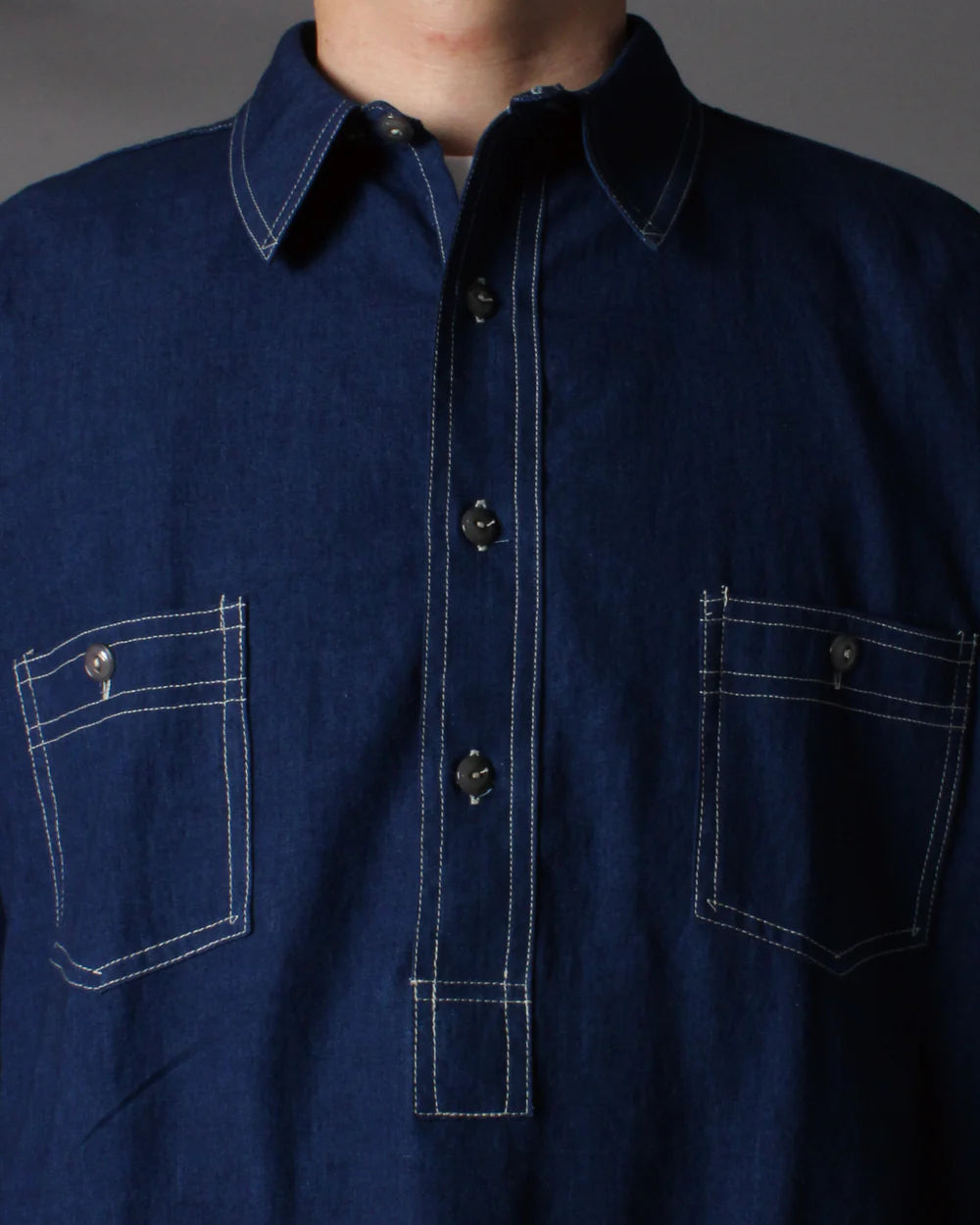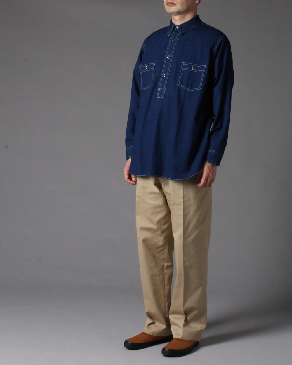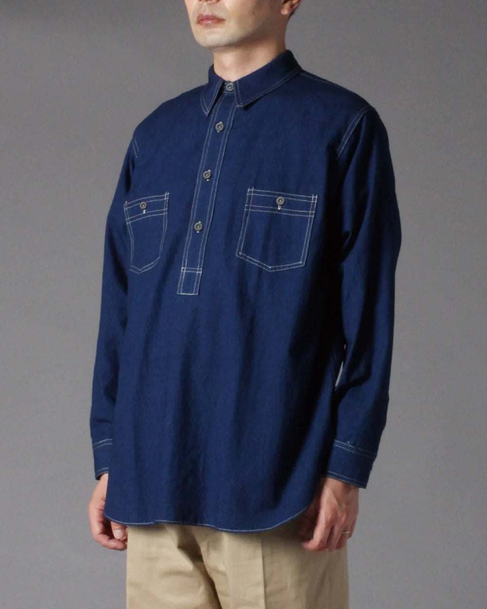 BIG YANKアーカイブに残された、1919年当時のプルオーバーシャツを忠実に再現。量産化される以前の、実用衣料としてのシャツが持っていた空気感を、今に伝える一枚です。