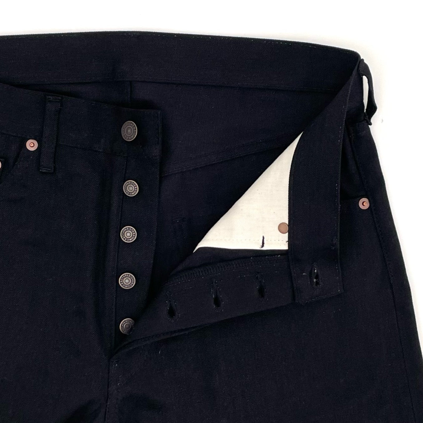 12ozのセルヴィッチデニムを使用。ボタンフライ。