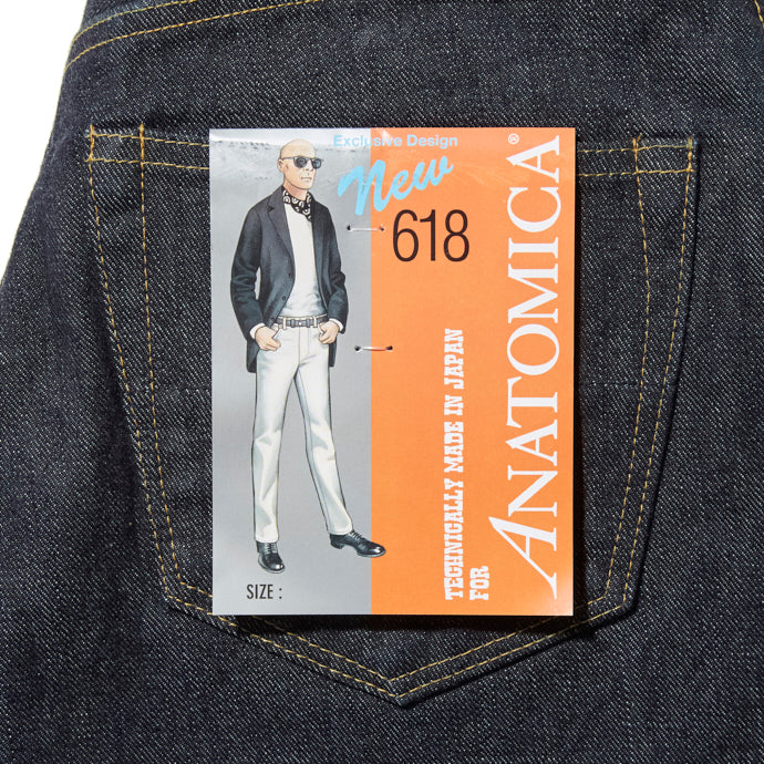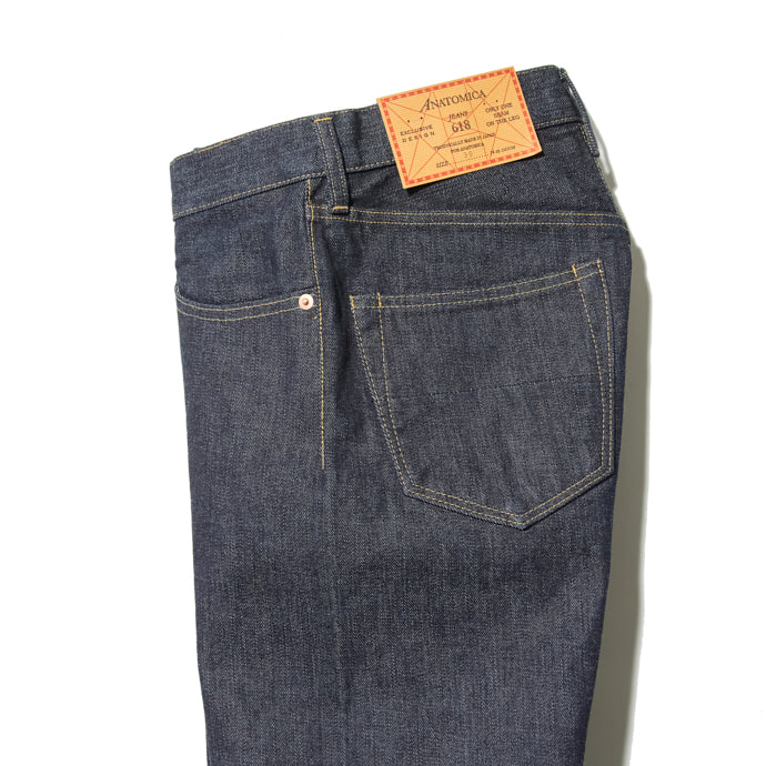 黄金比(1:1.618)のように美しいシルエットを持つ618オリジナルは、ディレクター、ピエール・フルニエとデザイナーの寺本欣児をつなぐきっかけとなったモデルであり、アナトミカブランドから初のジーンズ、そうマスターピースといえるプロダクトです。