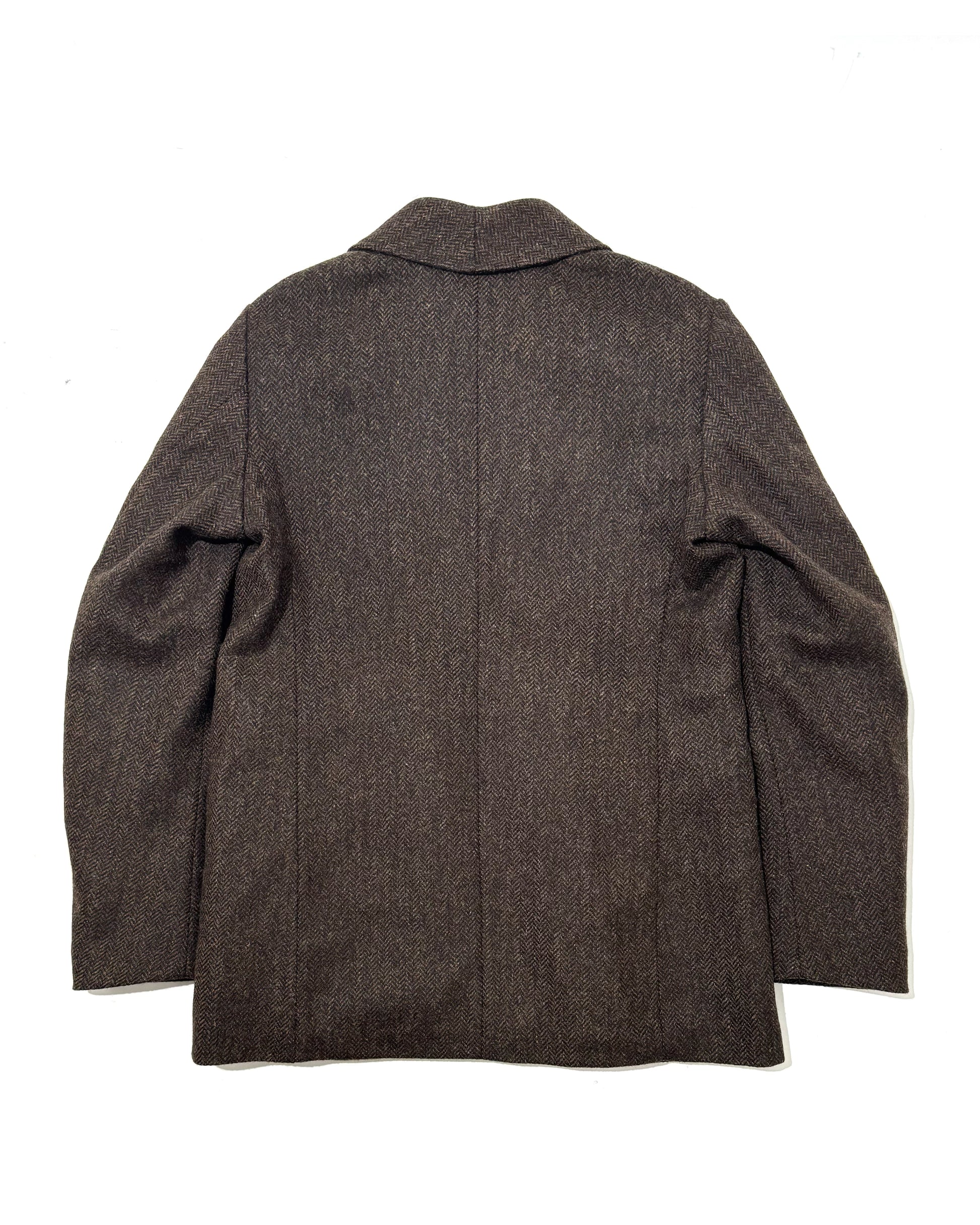 ヘリンボーン織りのシェットランドツイード生地を使用。