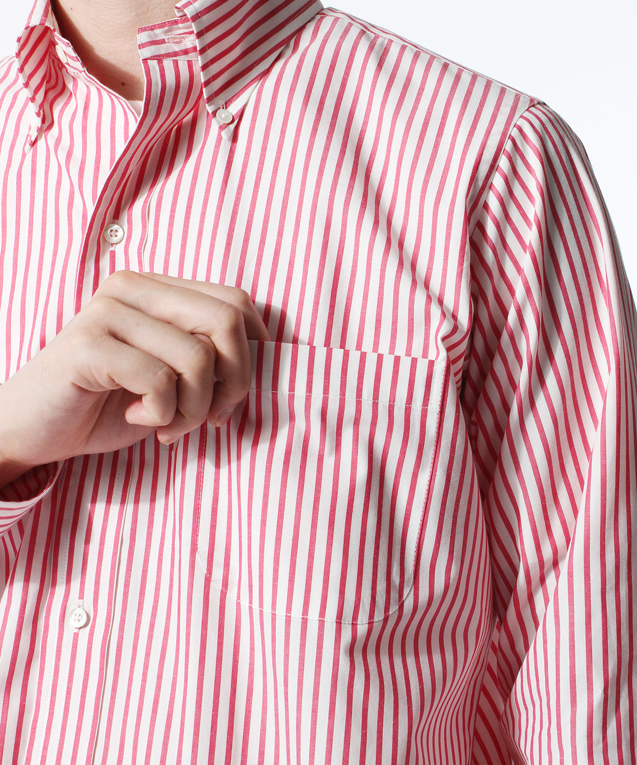 ボタンダウンシャツの顔とも言える、襟のスリーフィンガーロールは研究された設計で生まれます。