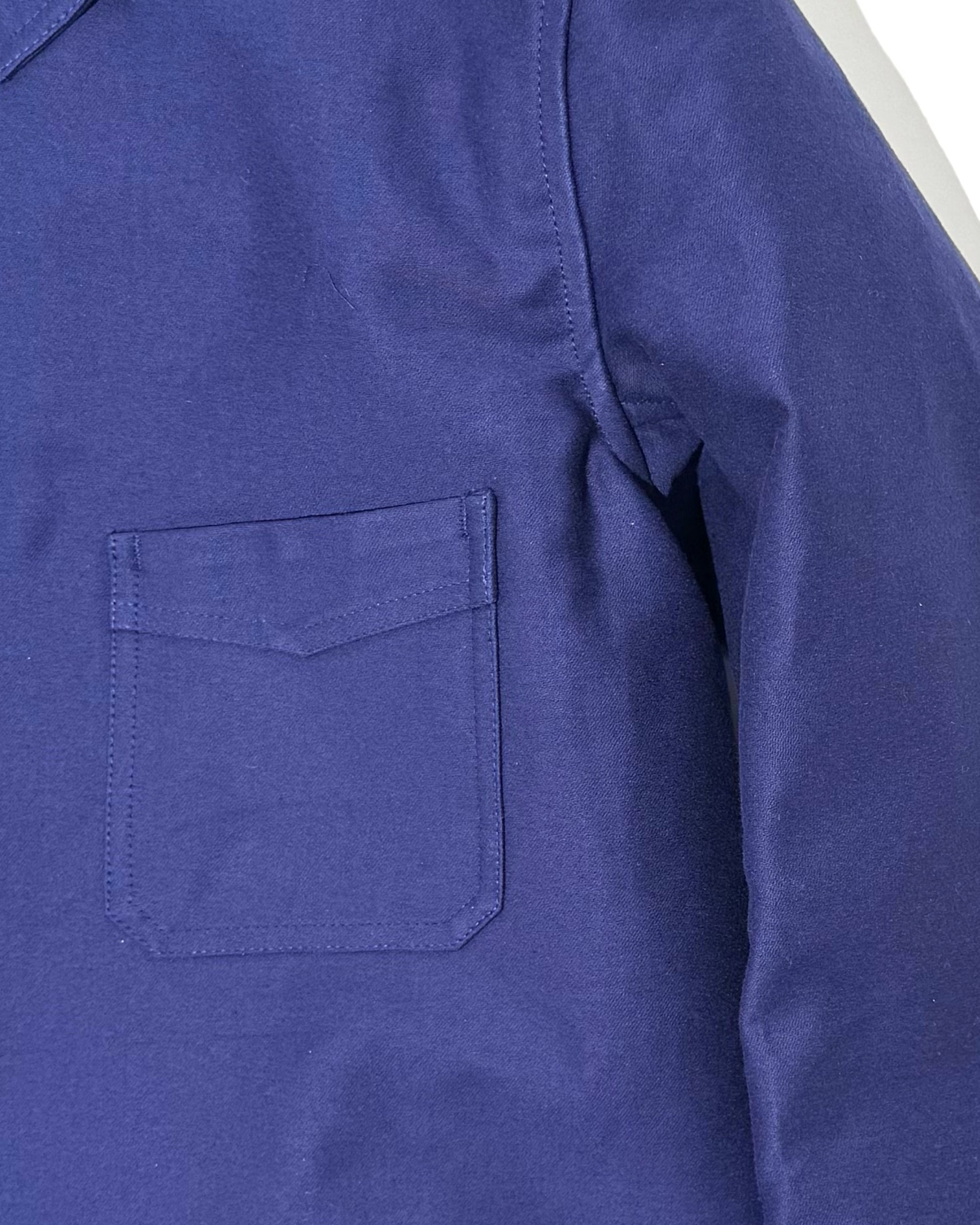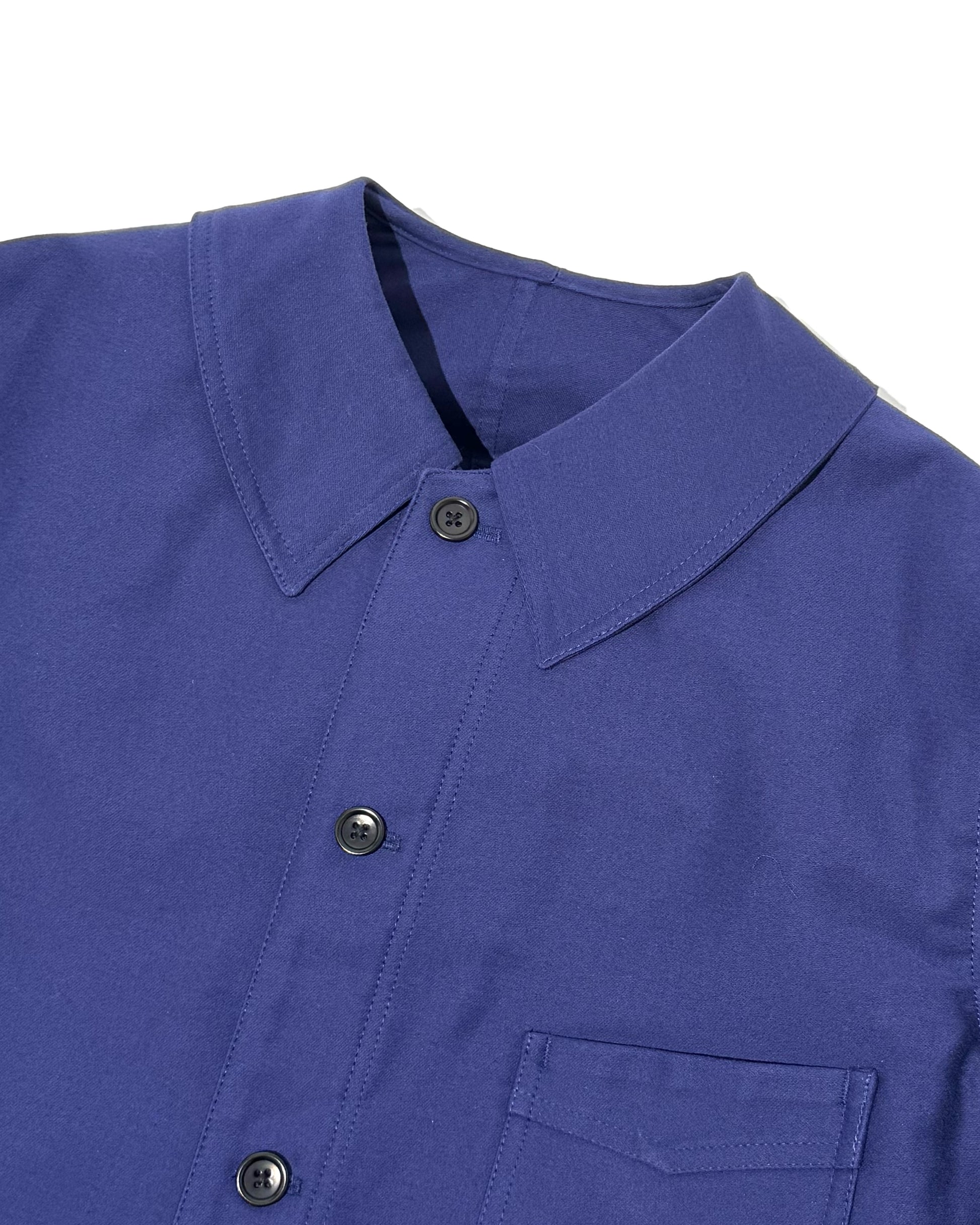 フランスのワークウェアベースになっており、ラウンドした襟・パッチポケット・ボックス型のシルエットが特徴です。
