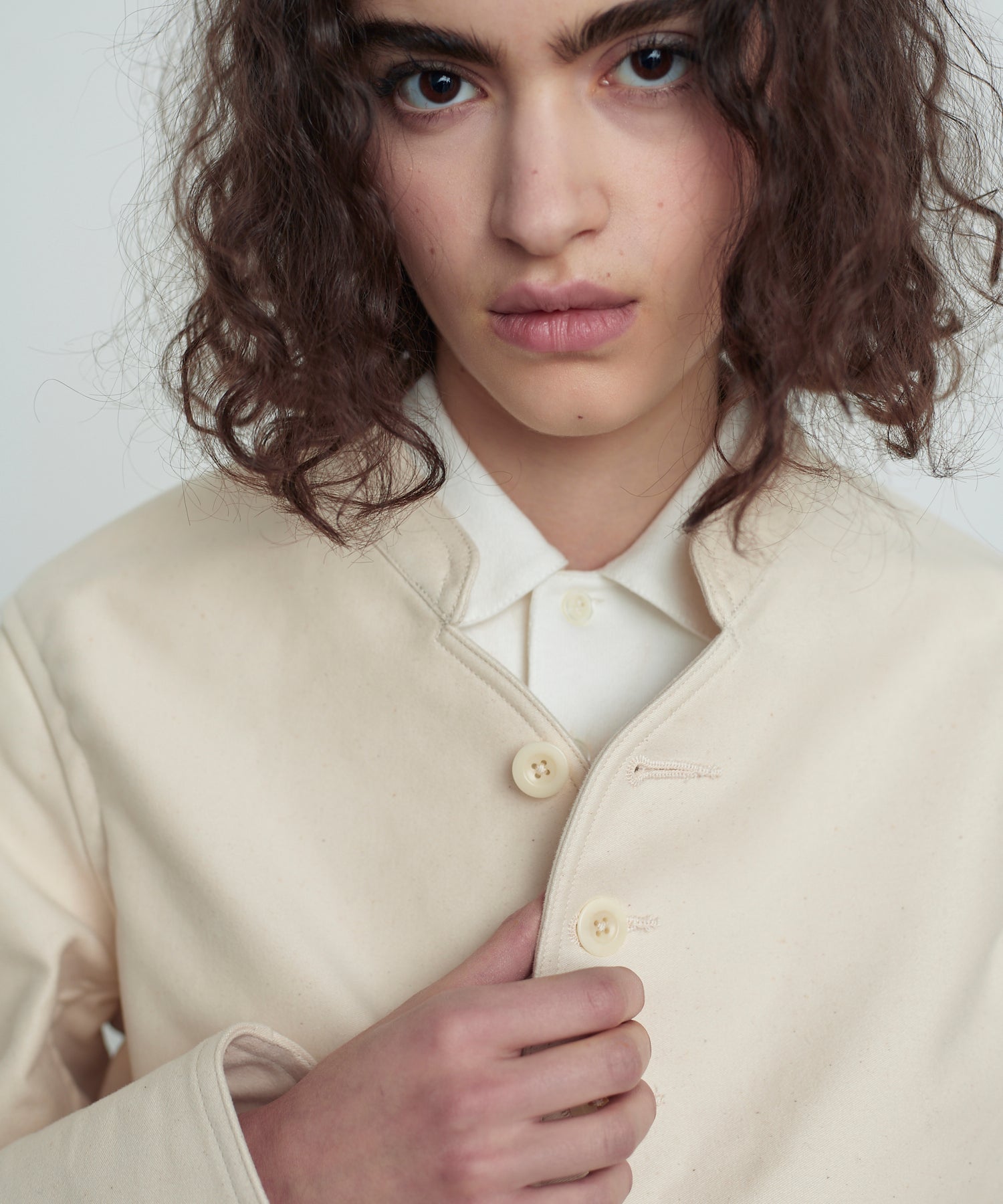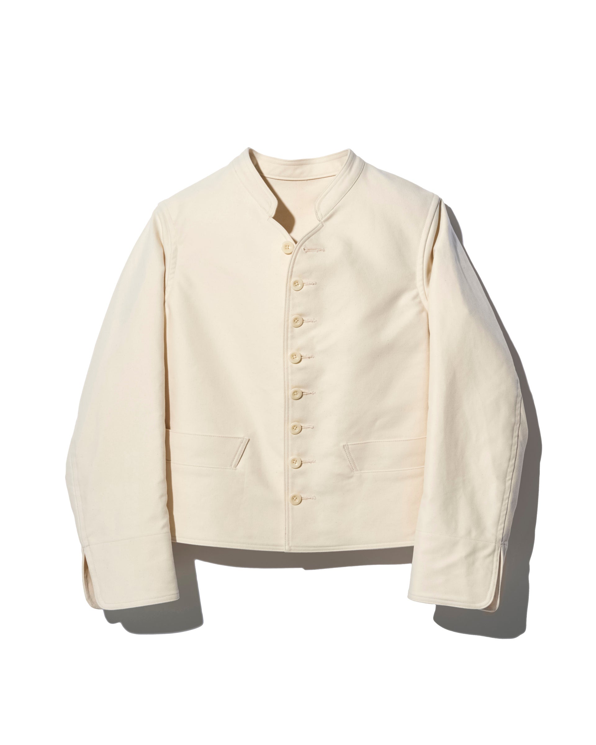 モデル名「DOLMAN」は、ナポレオン三世時代の兵士の呼称に由来。当時フランス軍で着用されていたワークウェアをベースに再構築した一着です。