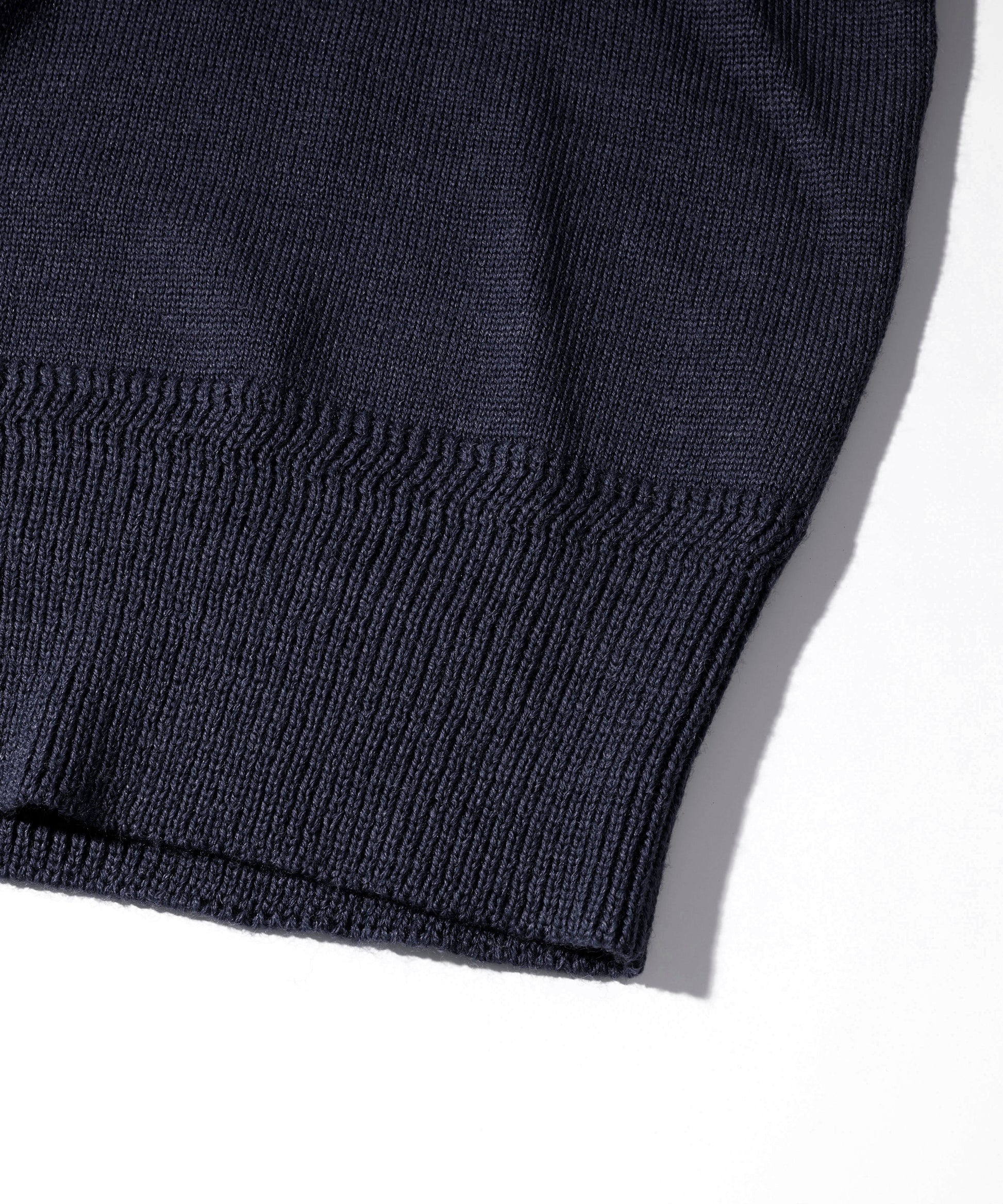 英国産ダウン種ウールとサウスアメリカンウールをブレンドした上質な梳毛糸を使用。軽やかで滑らかな肌触りながら、しっかりとした保温性を備えています。
