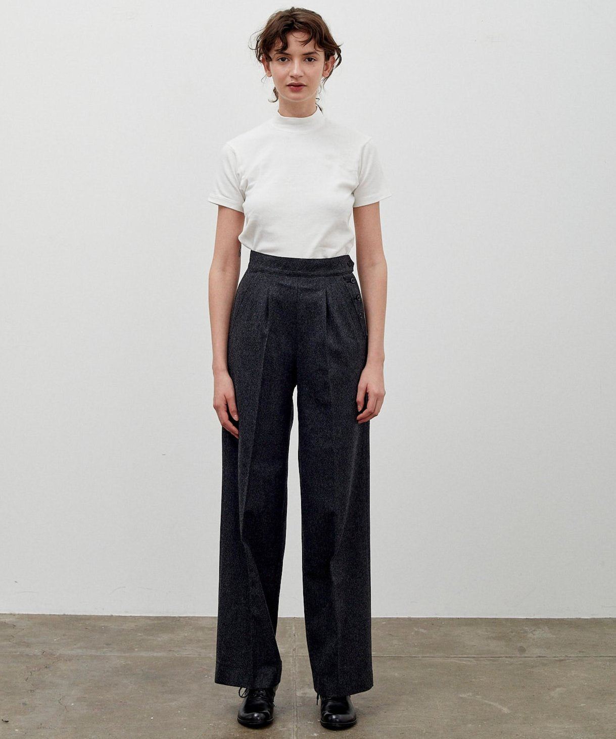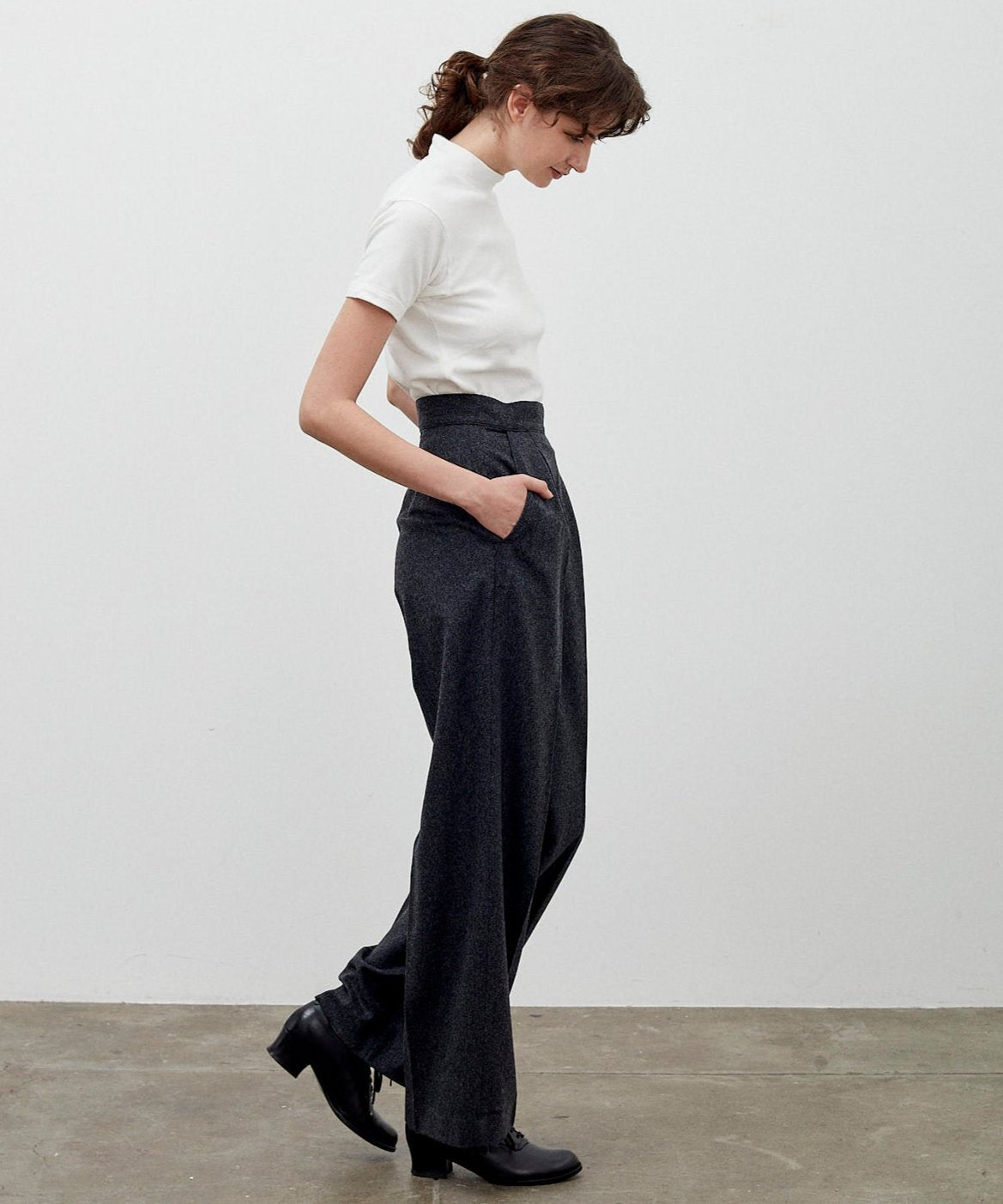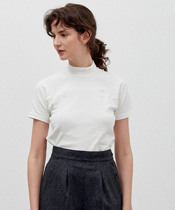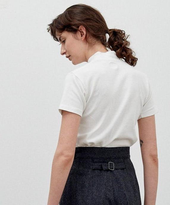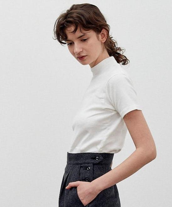 デザイン性ある、程よい長さのモックネックは1枚で着用は勿論、タートルネックのニットの下に着用すると首回りのチクチクを回避したりなど、デザイン面でもデイリーで万能なアイテムです。