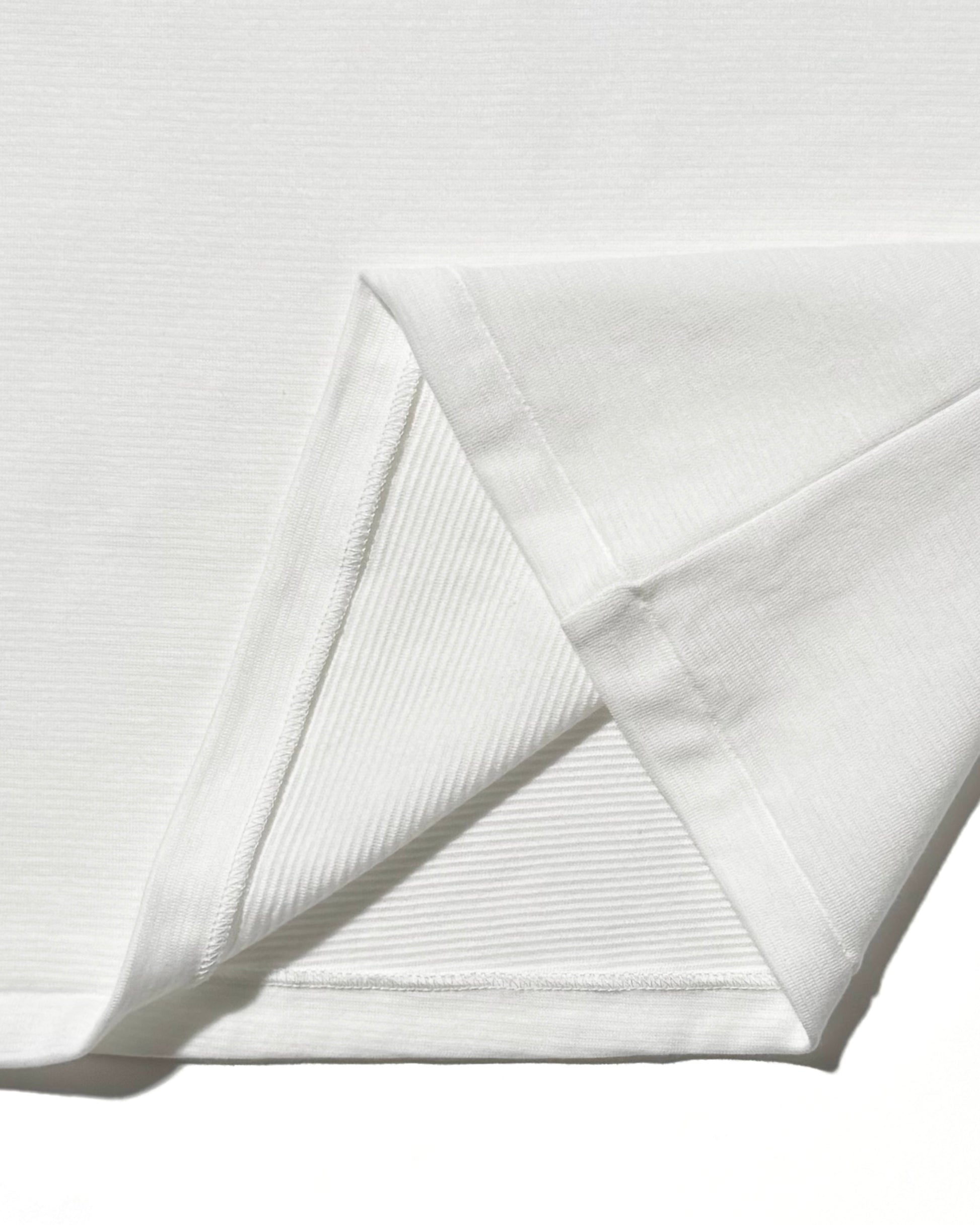 グログラン素材と呼ばれるこの生地の織り方は裏面をエンボス設計で仕上げ、肌への接地面積が天竺生地より極端に少なくなります。
