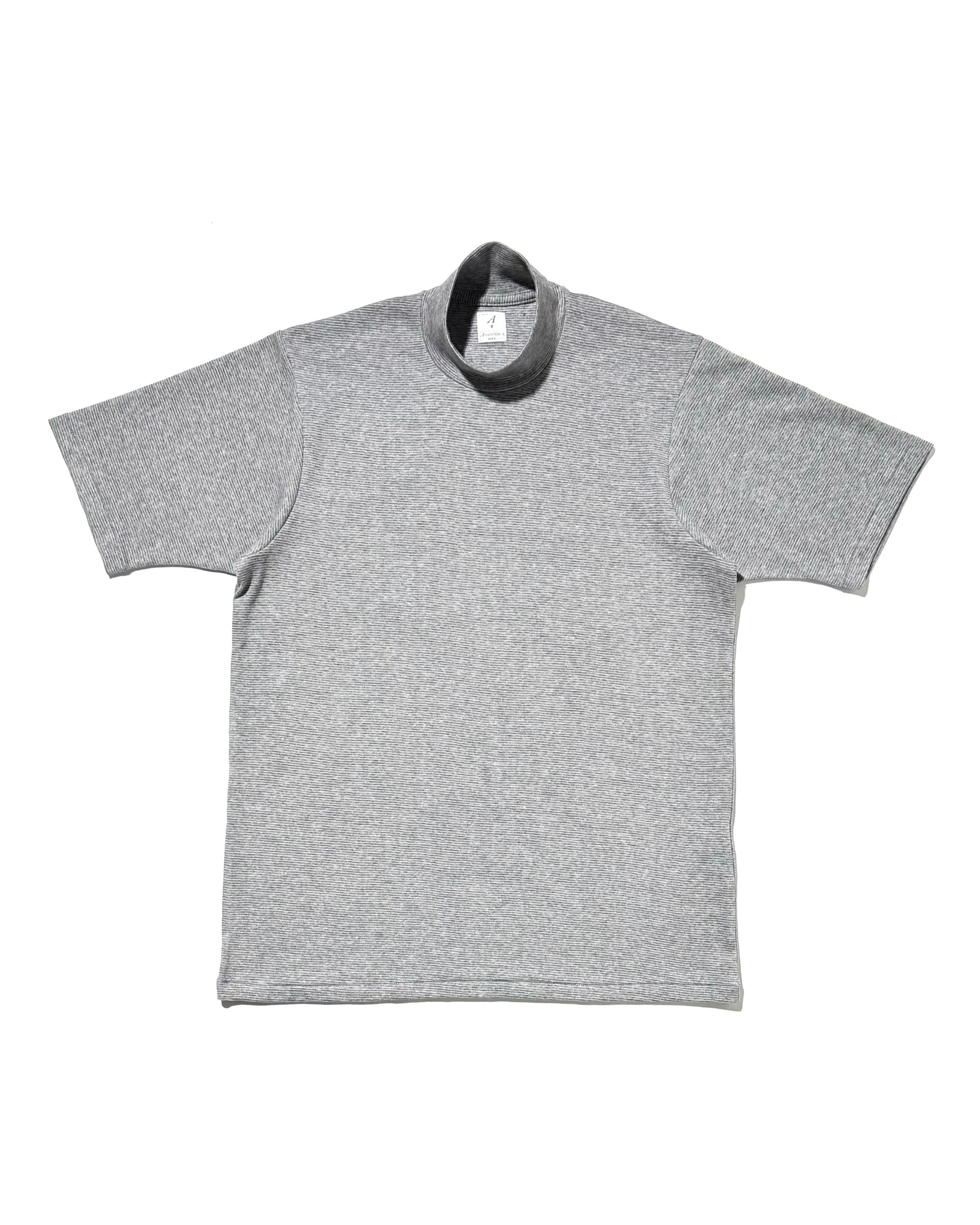 オリジナル素材のモックネック Tシャツ。