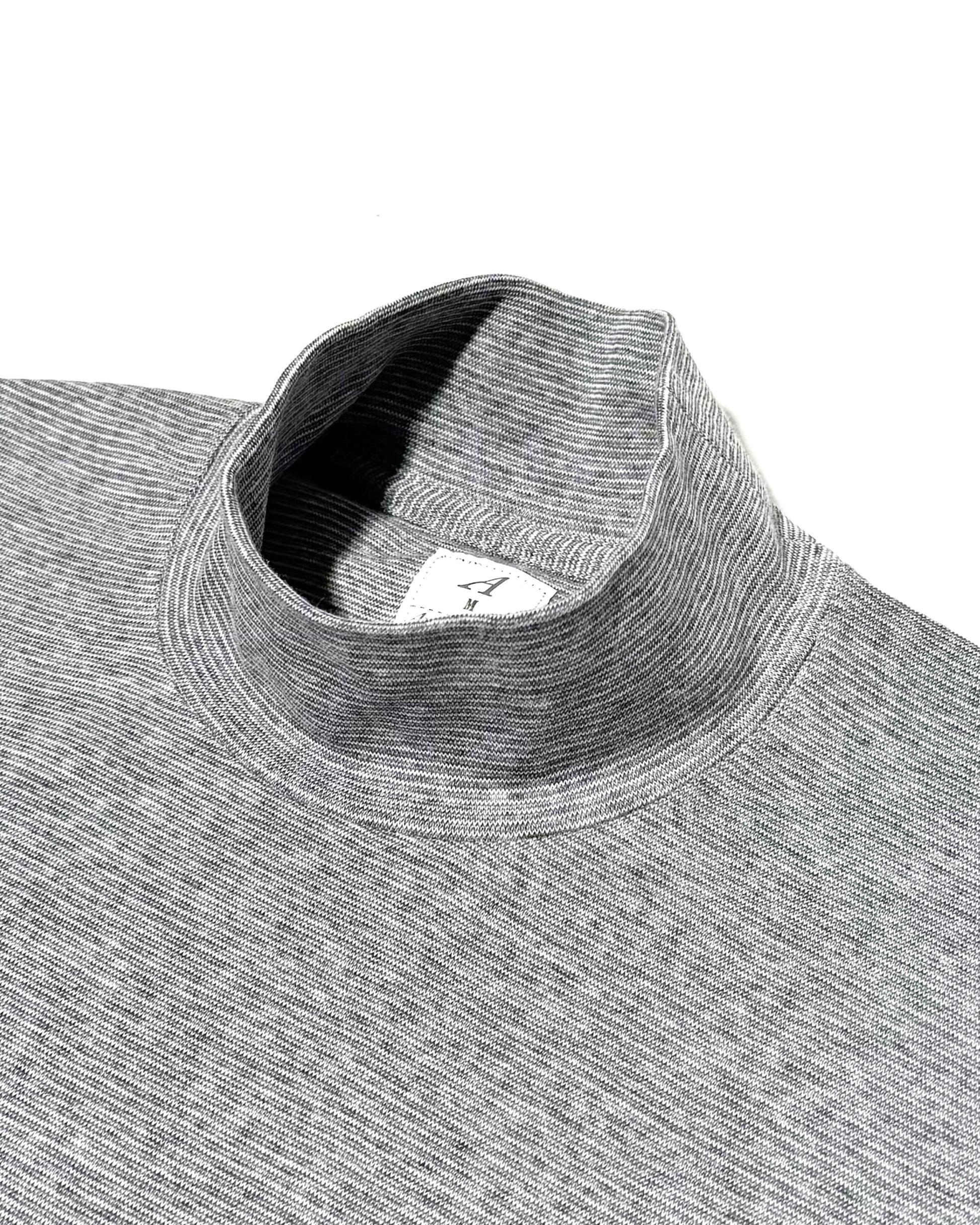デザイン性ある、程よい長さのモックネックは1枚で着用は勿論、タートルネックのニットの下に着用すると首回りのチクチクを回避したりなど、デザイン面でもデイリーで万能なアイテムです。