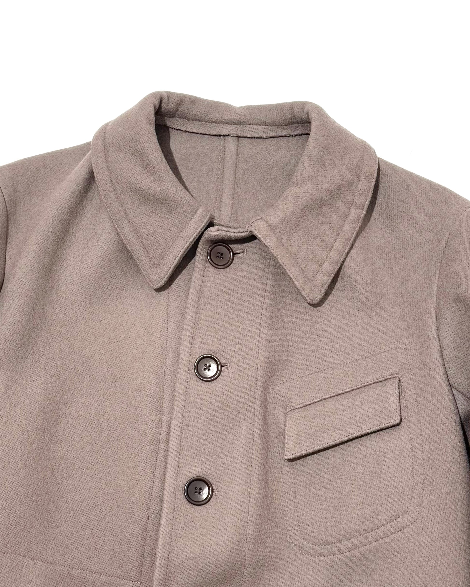 動きやすさを考慮した、ゆったりとした見頃、前面に配置された大きなフラップポケットがポイント。コンパクトなシルエットながらも、肩から裾にかけて広がるAラインがコーデュロイの表情をより立体的にみせてくれます。
