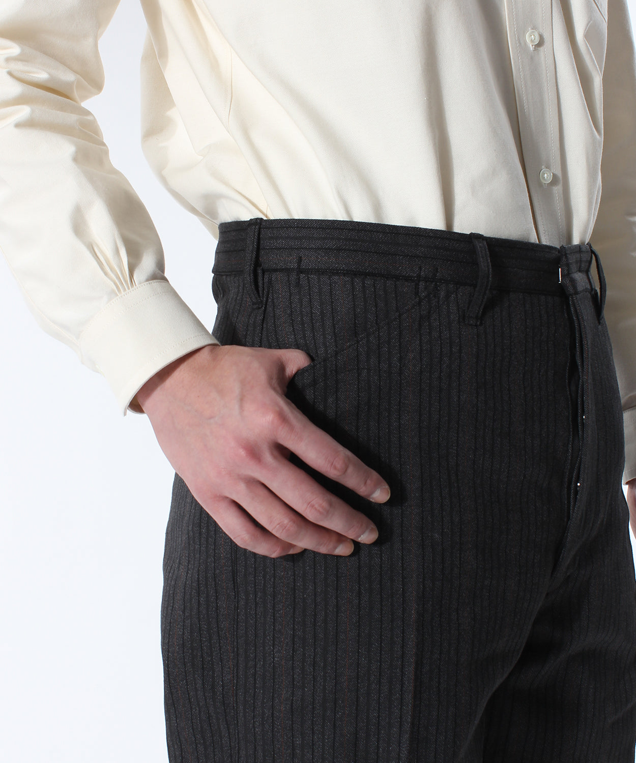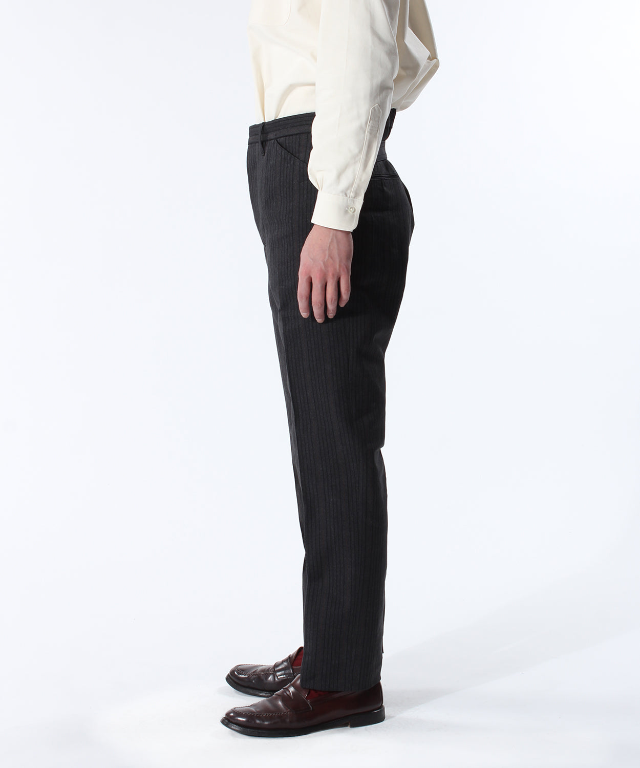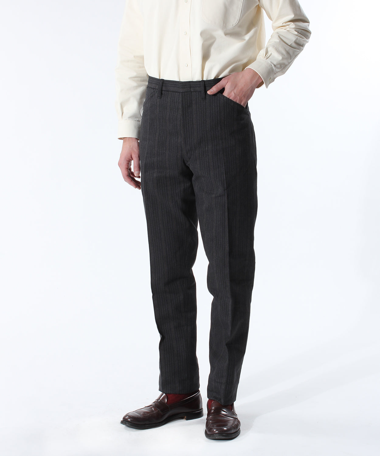 ・特徴的なディテールとして、コインポケット、細い両玉縁ポケット、シンチバックなどが見られます。