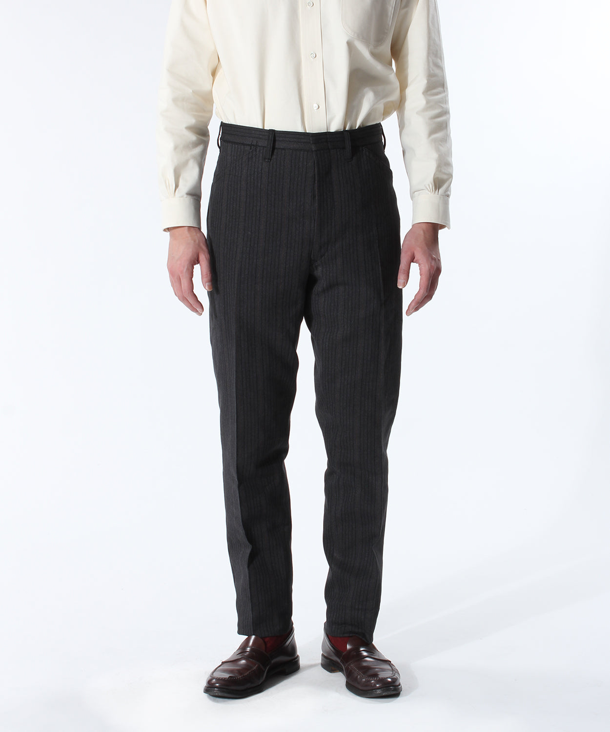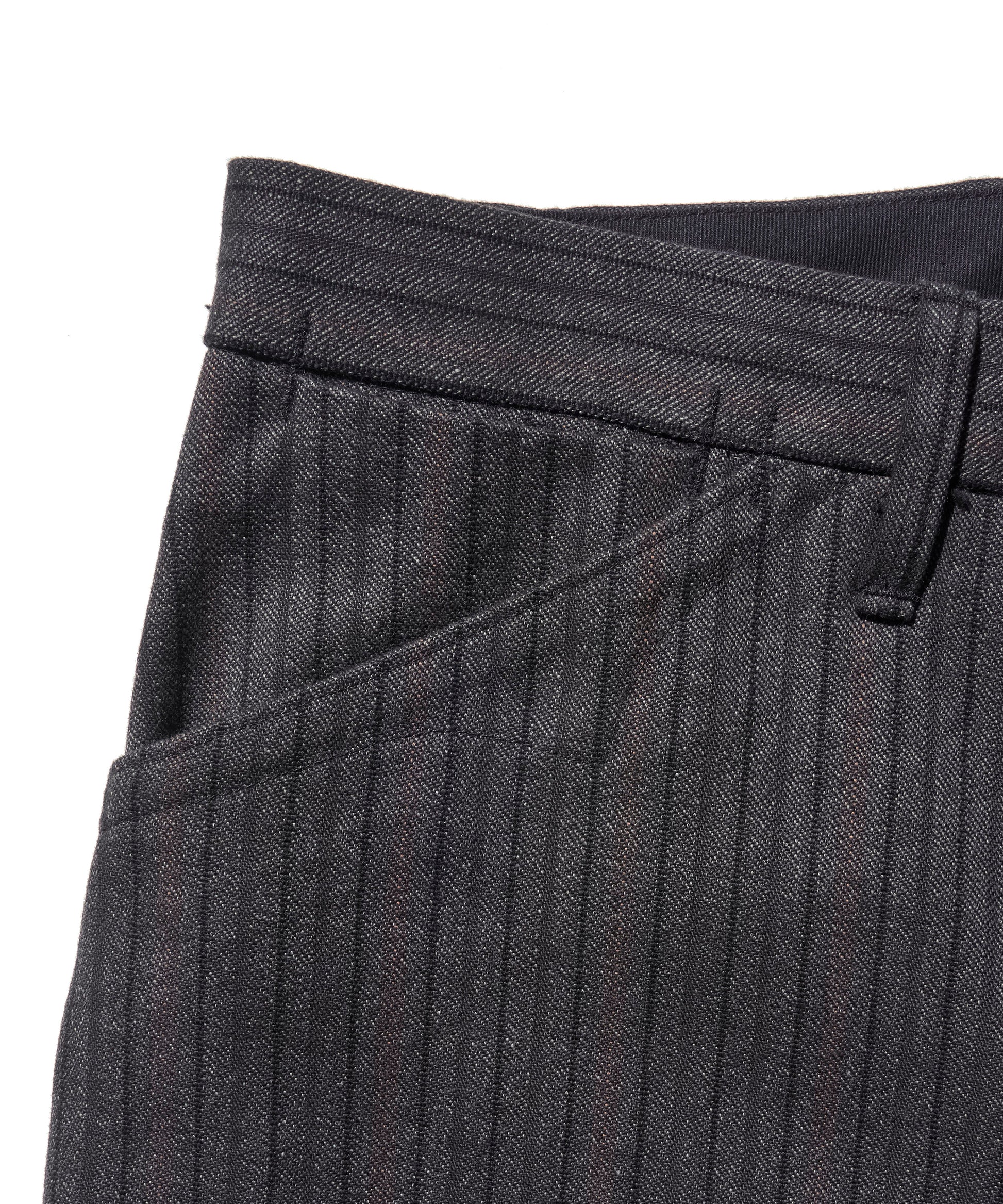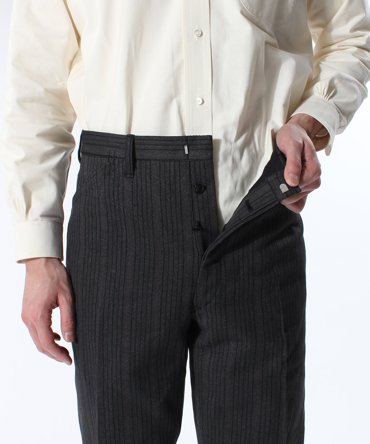 ・特徴的なディテールとして、コインポケット、細い両玉縁ポケット、シンチバックなどが見られます。