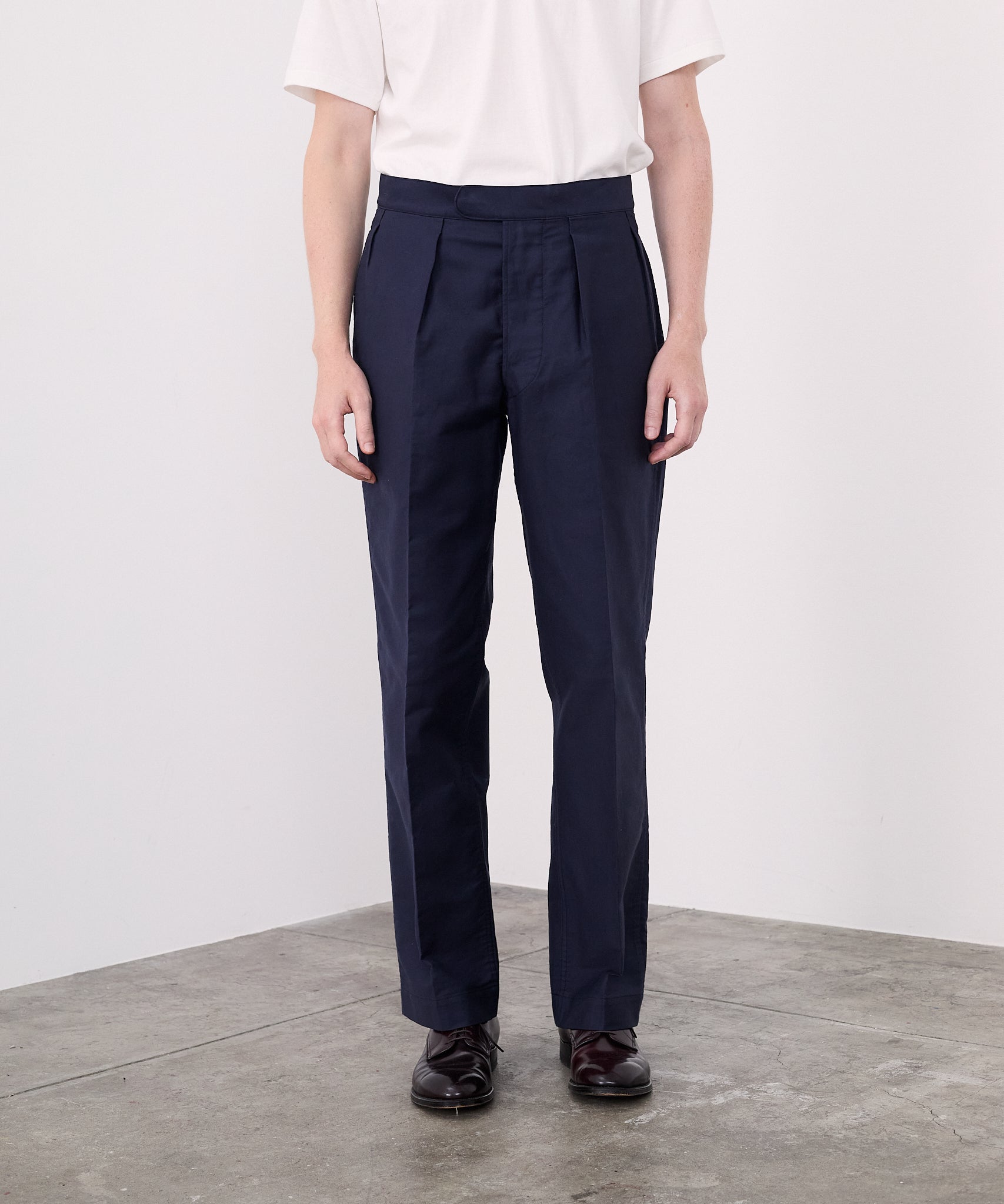 スレン染めのツイル生地。傾斜の緩い綾が特徴です。