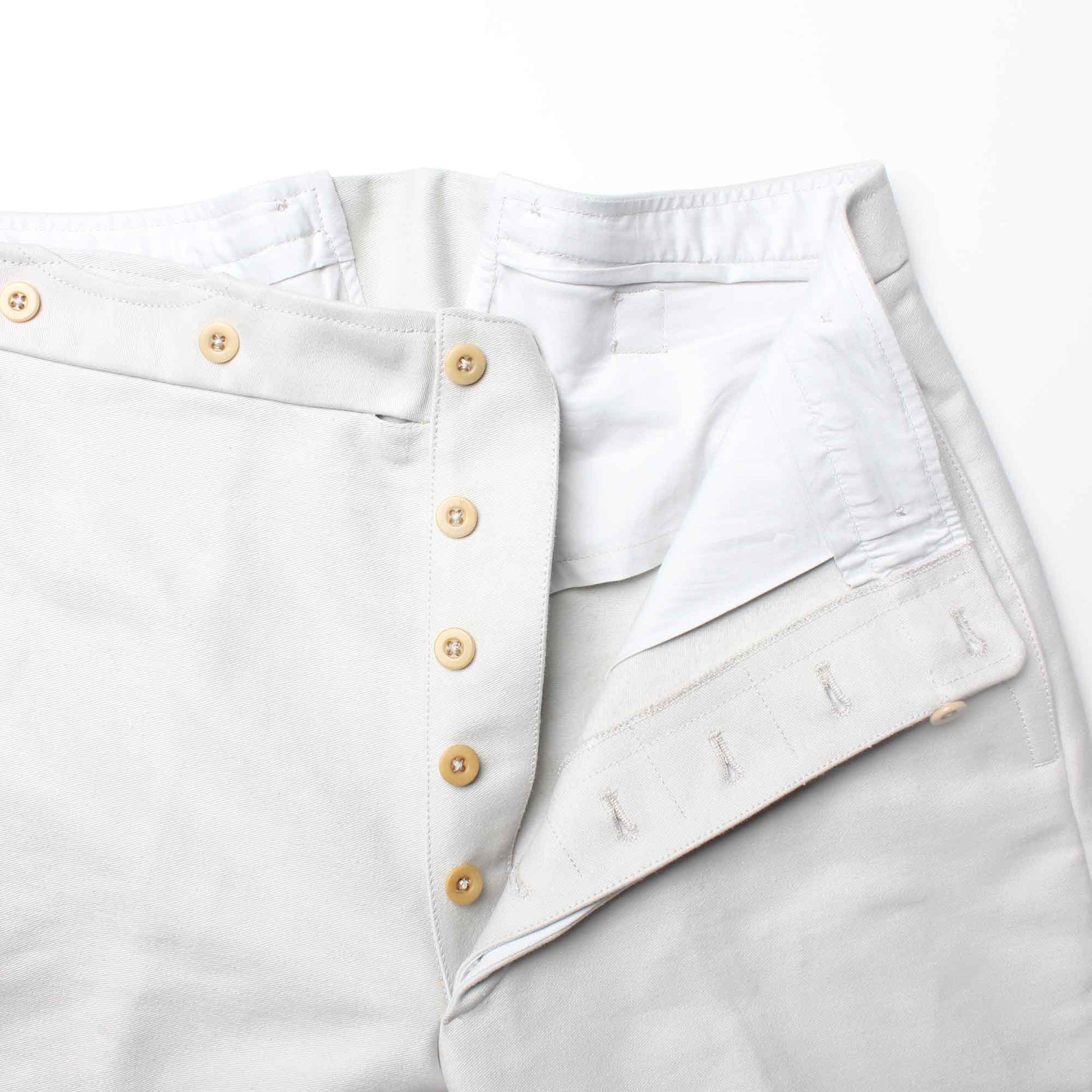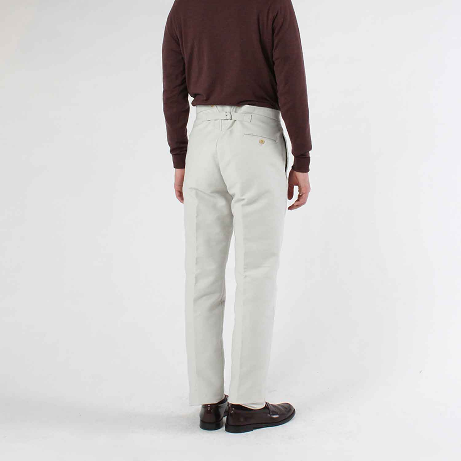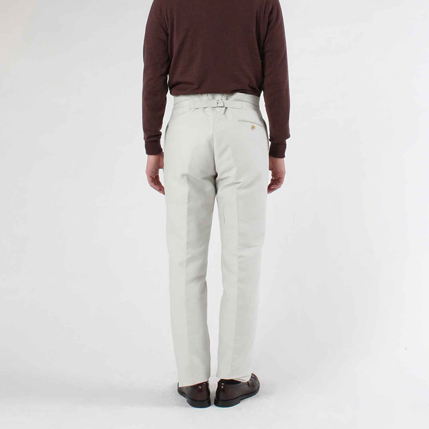 背面には、クラシックなディテールである「シンチバック」を採用。ベルトなしでもウエストの調整が可能です。