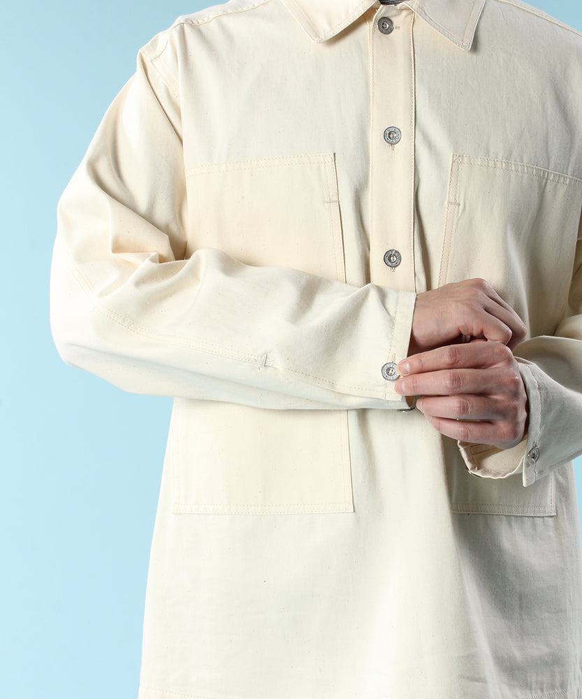 ナチュラルカラーの優しい色合いと、コットンの風合いは着こむごとに馴染んでいきます。
