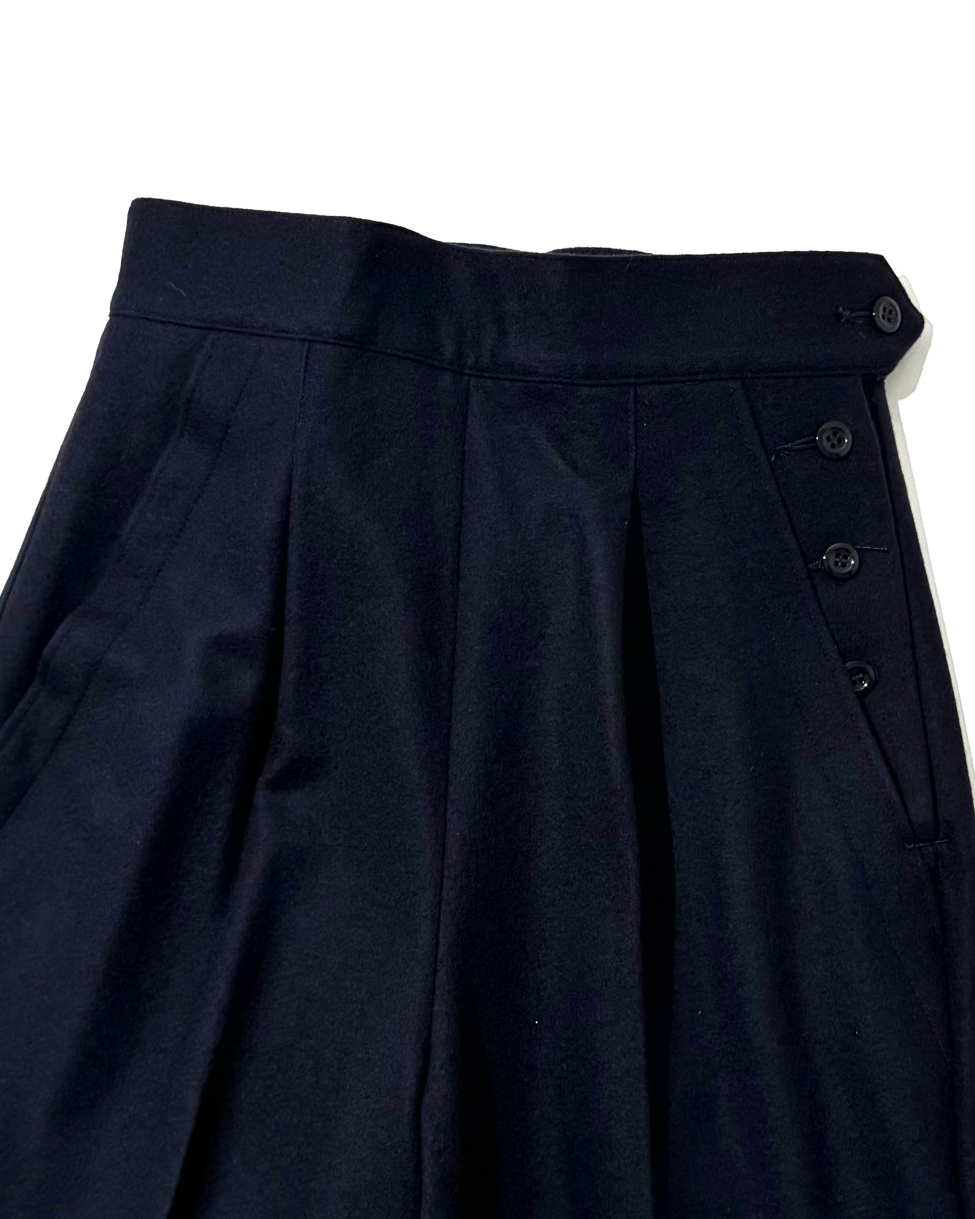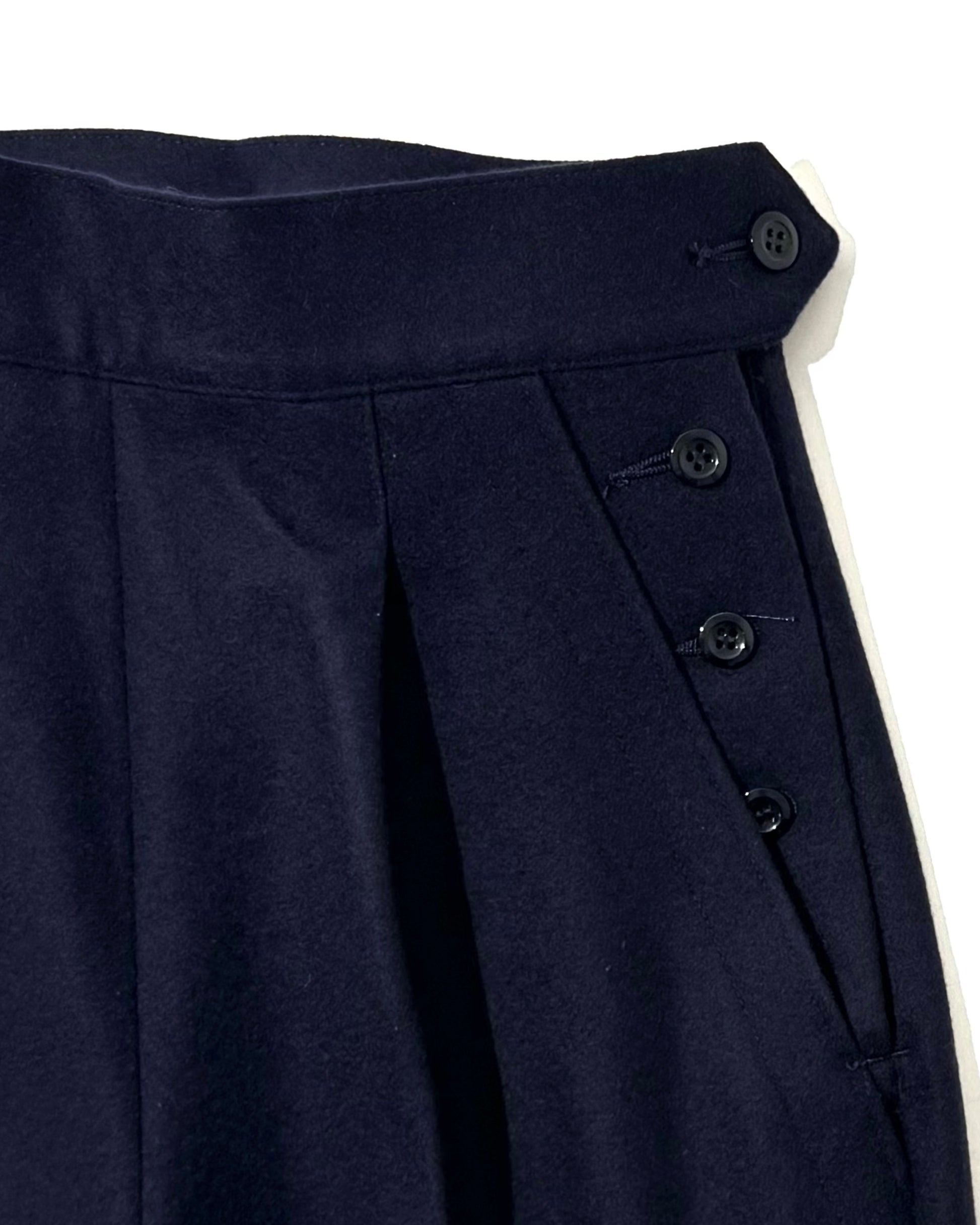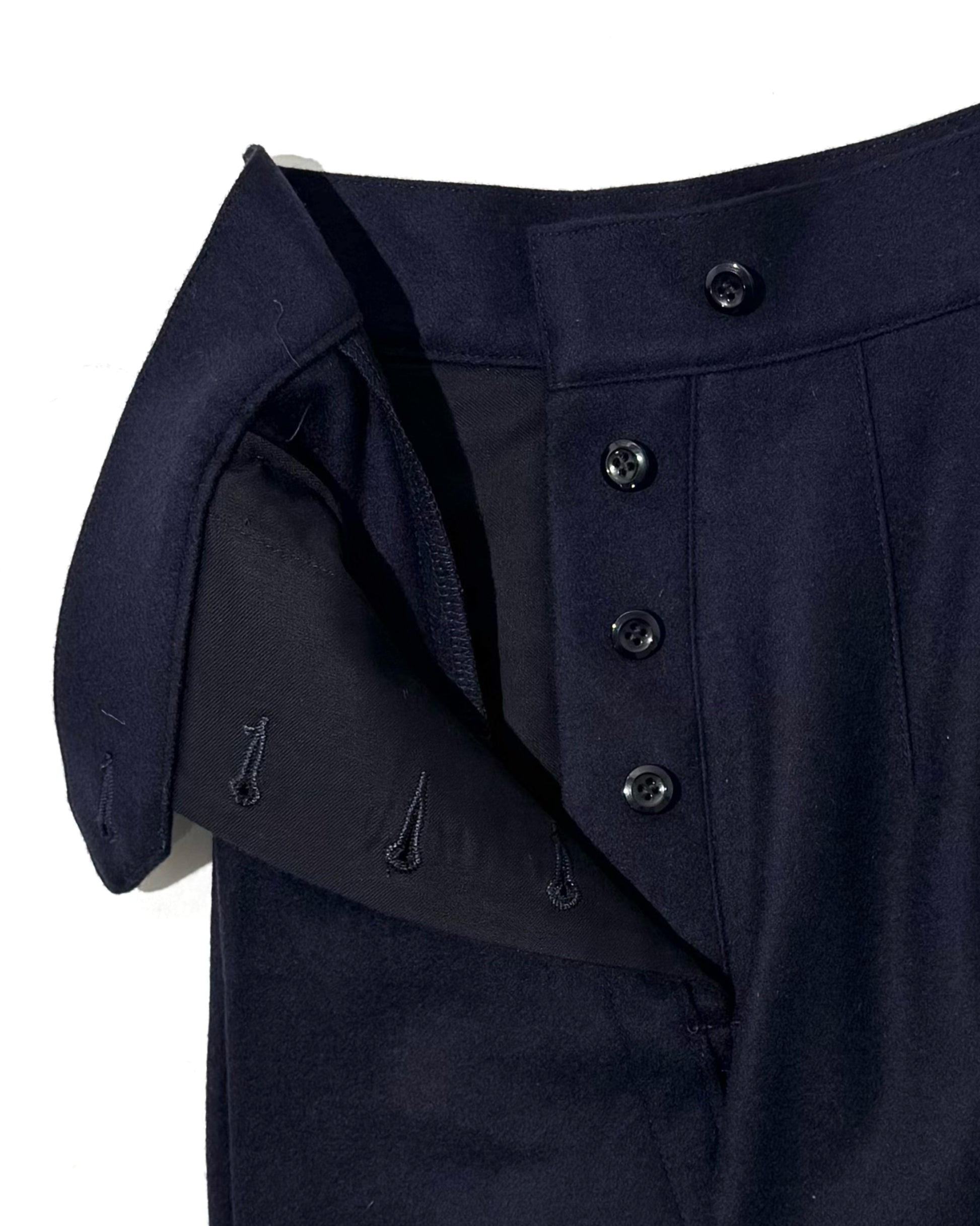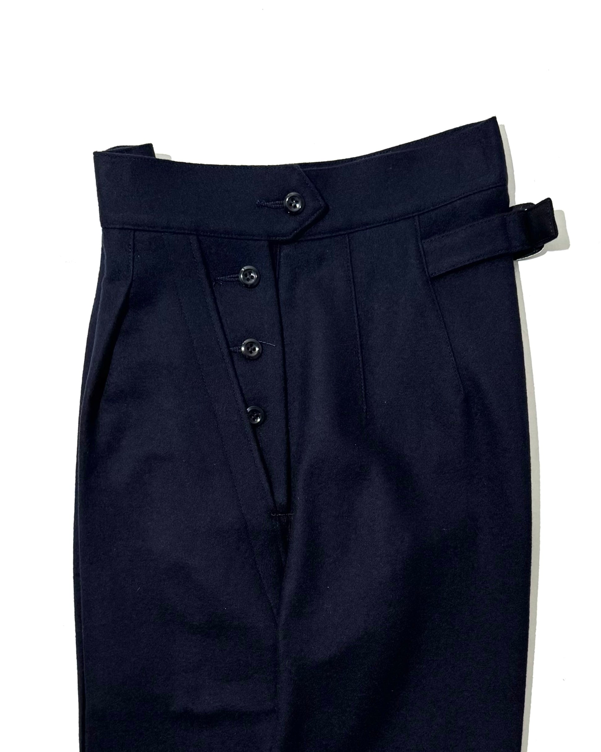 第二次大戦時にアメリカ海軍予備軍の女性部門であるW.A.V.E.S (Women Accepted for Volunteer Emergency Service)のダンガリーパンツがモチーフ。屋外での労働の際に実用的な男性用のダンガリーパンツを参考に作られた女性用のパンツです。